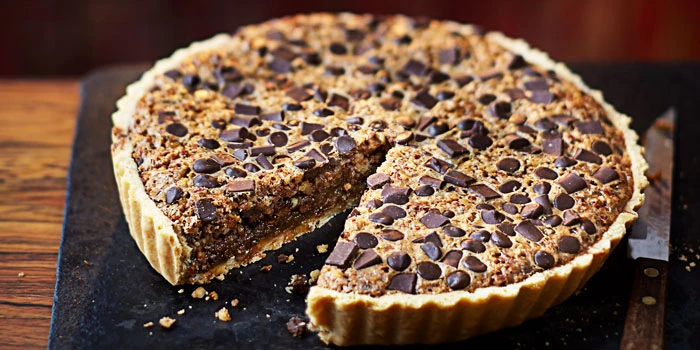 This choc chip hybrid is buttery, sticky and perfect for a festive gathering. Serve with vanilla ice cream for a seriously rich dessert.