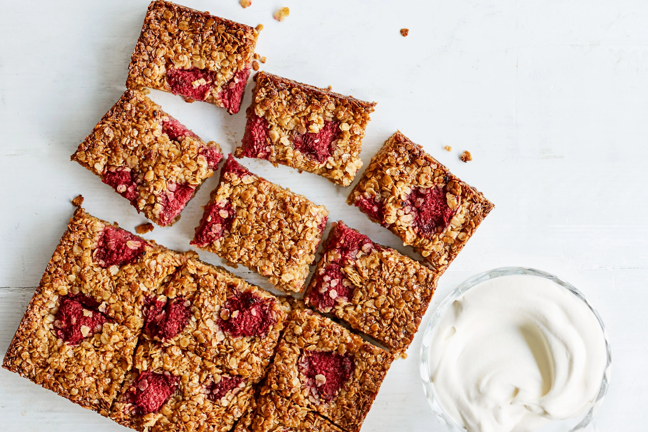 Make these easy raspberry honey flapjacks using just five ingredients. Serve with a cuppa for a perfect mid-morning pick-me-up, or freeze for a later date