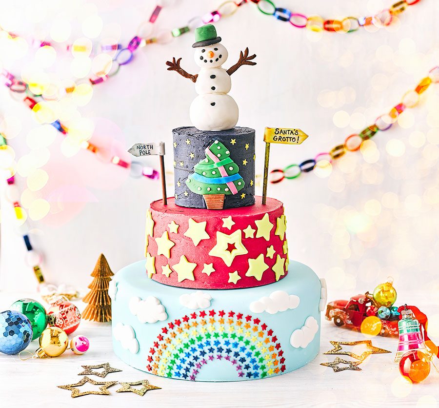 Dazzle guests with this fab cake. Designed by eight-year-old Jessica Whitlow in our magical Christmas cake competition, it features three flavoured sponges.