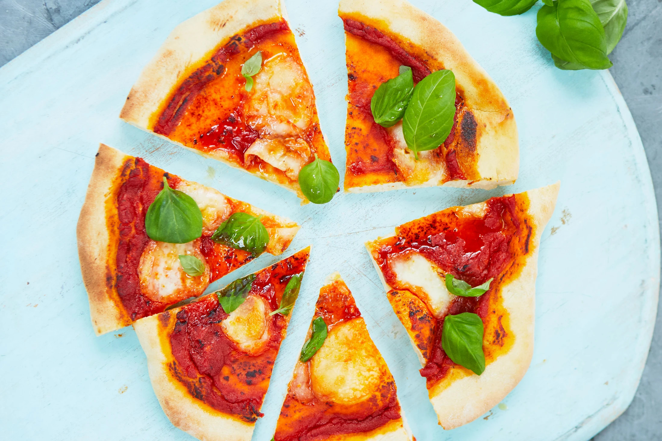 Make pizza for the family with a homemade base and tomato sauce. The recipe is perfect to get kids involved in cooking. Top with mozzarella and fresh basil