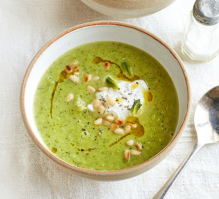 Make this broccoli and pea soup for lunch or to serve as a starter, and top it with minty ricotta and pine nuts. A healthy dish, it delivers three of your five-a-day