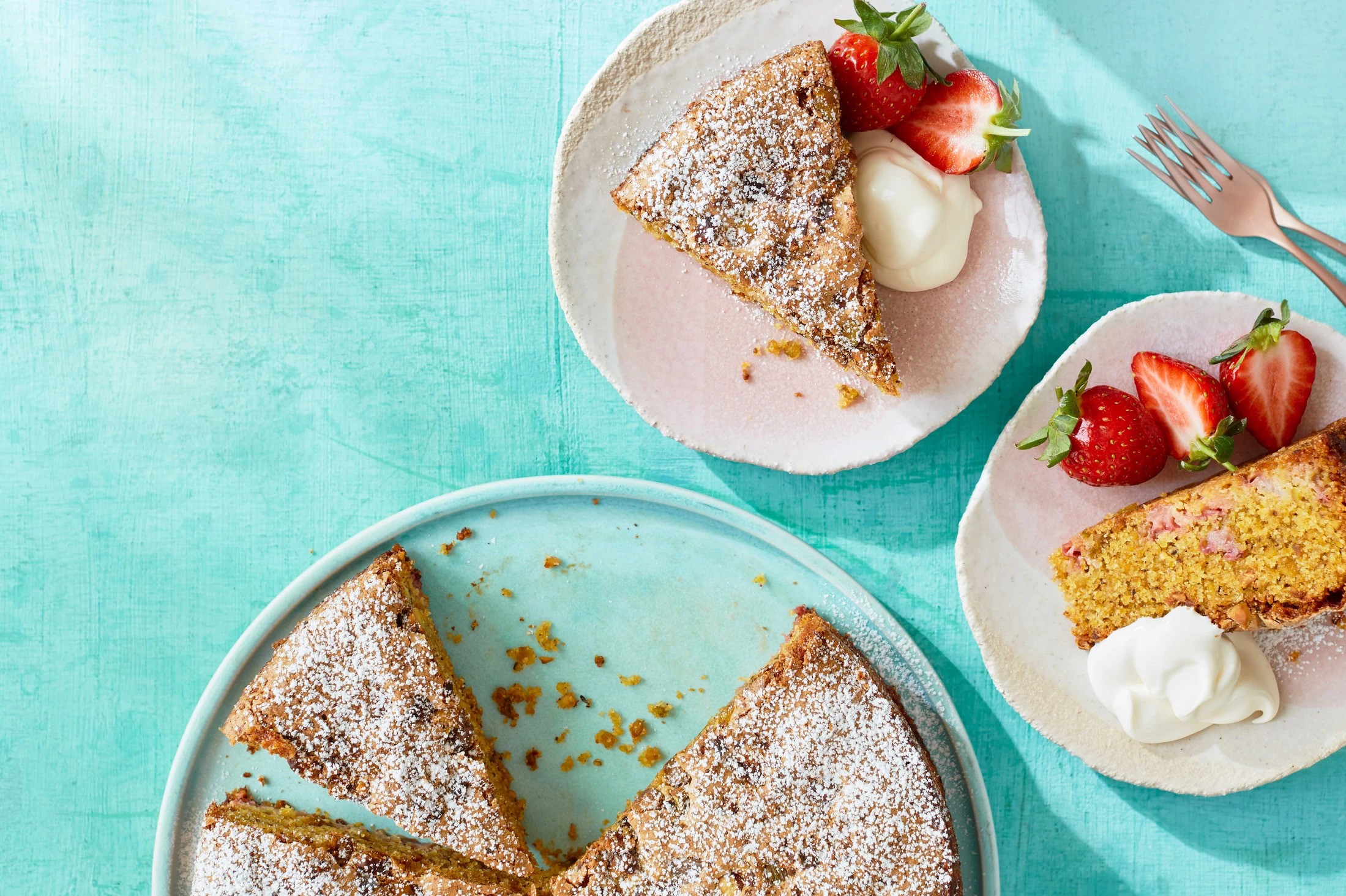5) Strawberry & pistachio olive oil cake