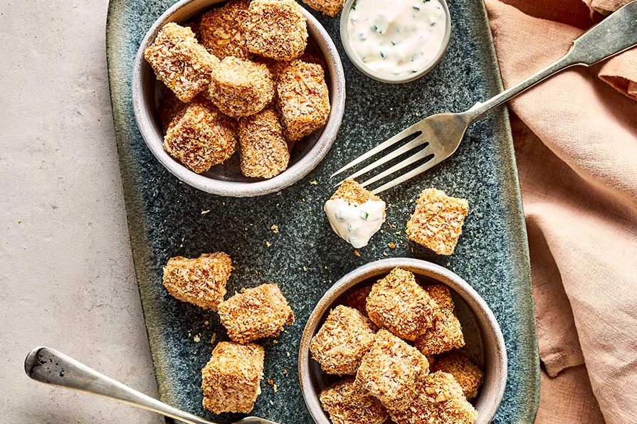 Try cooking tofu in an air fryer. Coated in breadcrumbs flavoured with garlic and paprika, enjoy it as a snack with your favourite dip or to accompany a main meal.