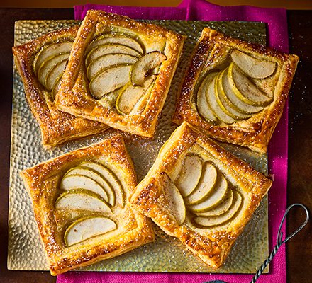 Use a sheet of ready-rolled puff pastry to make these easy tarts filled with apples and cinnamon. Made in an air fryer, dust with icing sugar to serve.