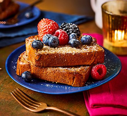 Make French toast in an air fryer then pile on your favourite toppings. Finish with a sprinkle of icing sugar at Christmas to add a festive feel.