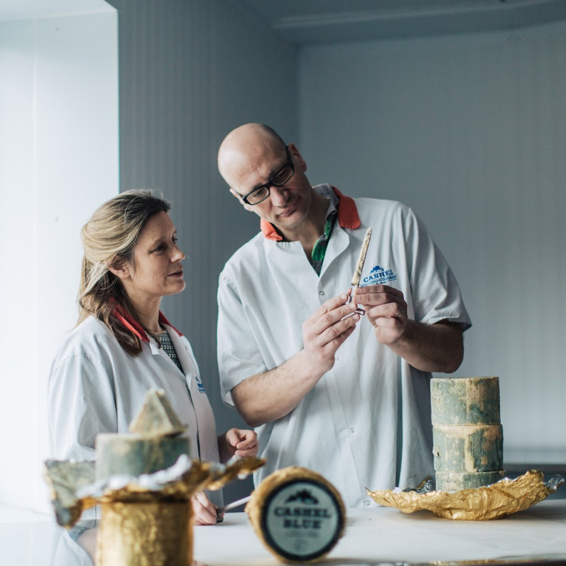 Following a hearty breakfast, we arrived bright and early at Cashel Farmhouse Cheesemakers, Tipperary. Operating as both farmers and cheesemakers, they are proud recipients of numerous global cheese awards for their iconic Cashel Blue Cheese. Operating for 14 years, Cashel Farmhouse Cheesemakers is a testament to the marriage of tradition and innovation. Less than 1% of cheese making in the country falls into the farmhouse category, making Cashel’s commitment to crafting artisanal blue cheese truly unique and they’ve mastered the art of creating award-winning blue cheese.