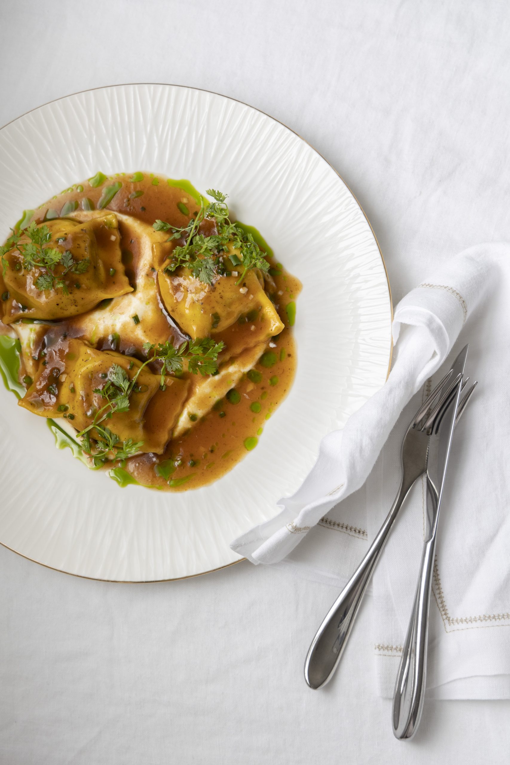 Our main courses continued to impress and delight. The Oxtail Pastitsio showcased a gorgeous presentation, with delicate handmade agnolotti dumplings, sporting a delightful al dente bite, filled with a rich beef tail ragu and nestled in a bed of creamy Graviera cheese mousse from Naxos.