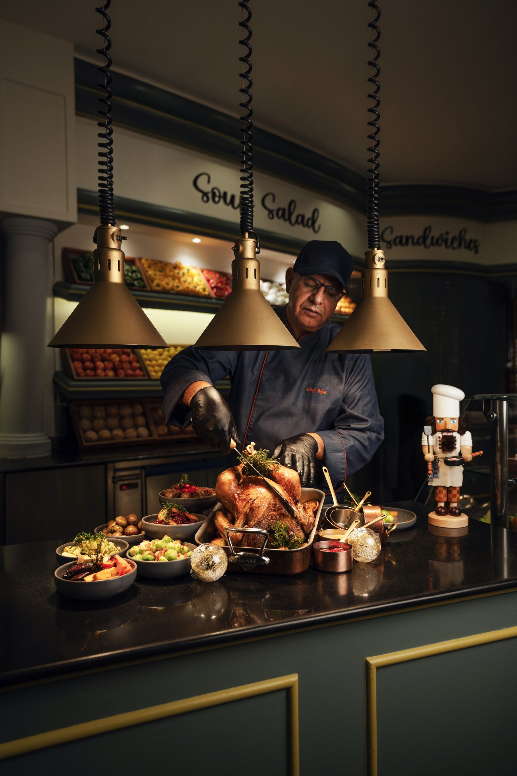 Turkey takeaway: Prior booking and advance payment required, with a minimum of 24-hour notice. Collection is available daily from 11:00 am to 11:00 pm at the main resort entrance. Available daily from 21st November 2025 to 10th January 2026. 5 kg Whole Roasted Turkey (serves up to 6). The Traditional Spread with all the trimmings and desserts for AED695, The Classic Carve inclusive of three sides, stuffing and gravy for AED495, The Simple Serve including Turkey, gravy and cranberry sauce for AED395, and 3kg Beef Wellington (serves up to 8, includes two sides) for AED695. Call +9714 666 1430 or email dine.palmjumeirah@marriotthotels.com.