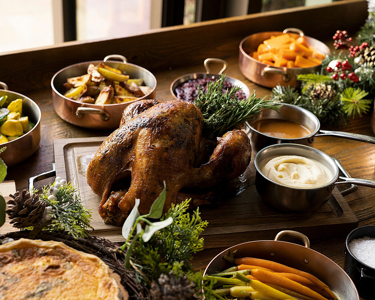Leave the holiday cooking to the pros and enjoy a delicious takeaway turkey meal with all the trimmings. Expertly marinated in citrus and herbs, these turkeys come with classic sides and indulgent desserts, perfect for at-home celebrations.