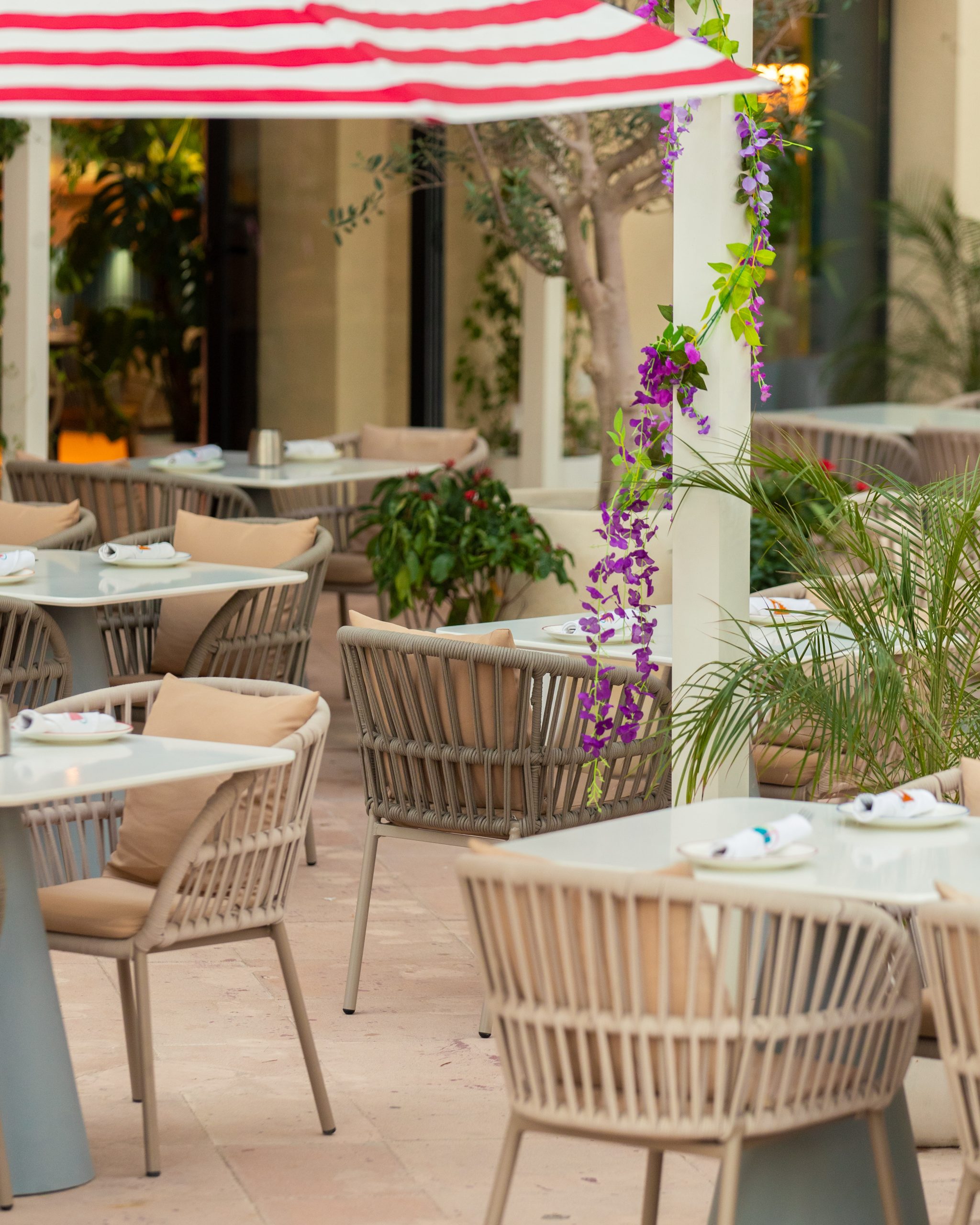 Sited at Palm West Beach, the Mediterranean restaurant and beach club works with local fishermen to put forth a range of dishes spotlighting a blend of Italian, French and Spanish flavours. Its interiors incorporate a coastal-style ambience with rustic designs and 19th-century French chandeliers suspended from the ceiling.