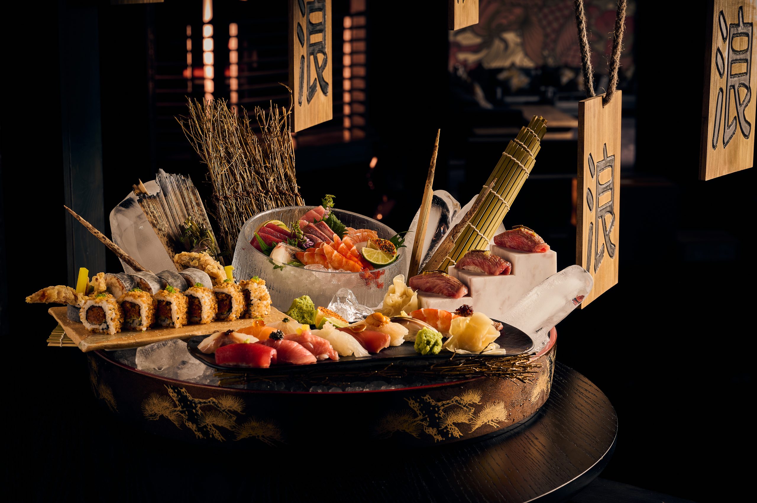 From hand-painted Samurai armour to bamboo-clad private pagodas, the space further creates an intimate and opulent atmosphere, while paper lanterns and beverage displays transport you straight to Japan. The venue’s outdoor pagoda tables, the only ones of their kind in Dubai, provide an exclusive setting for diners to enjoy the spectacular surroundings.