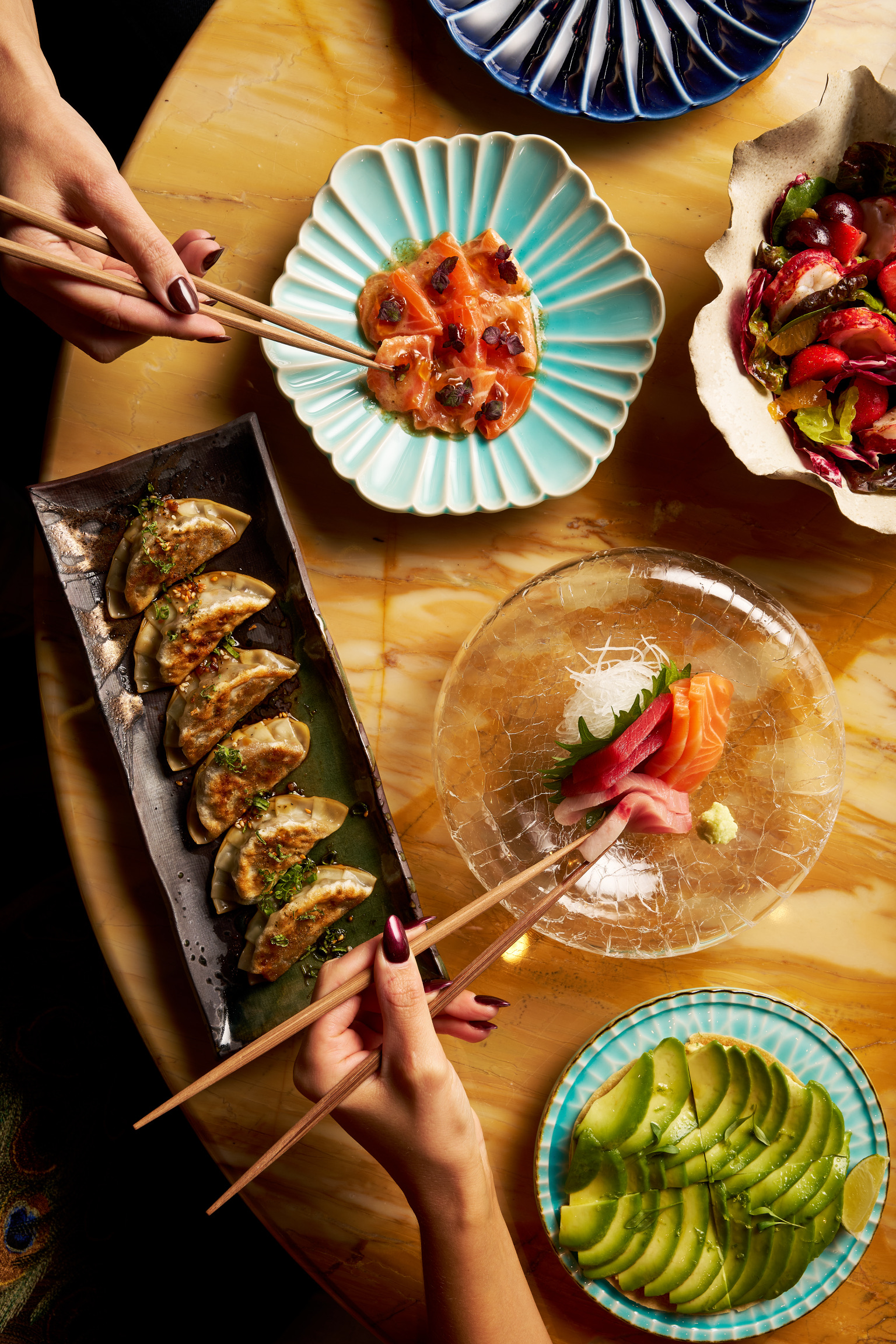 Served Monday to Friday from 12pm to 3pm, Zuma Dubai’s Ebisu Business Lunch starts with miso soup, followed by a choice of two starters such as beef tataki with ponzu, prawn and black cod gyoza, or crab salad with avocado and sesame. For mains, diners choose from dishes including grilled seabass with red yuzu pepper, barley miso chicken, spicy beef with sesame, or miso-marinated black cod.
