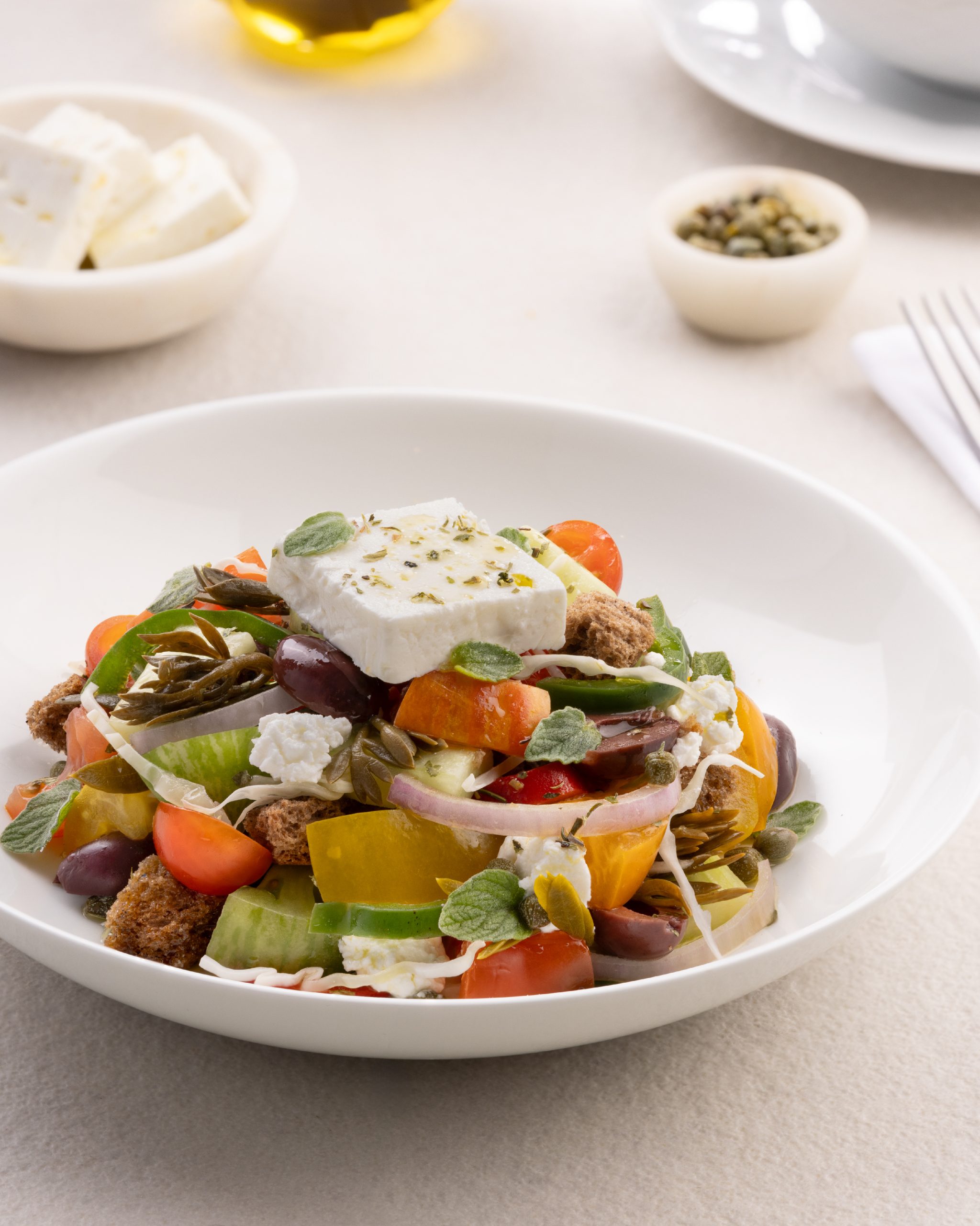 Inspired by the traditional Greek salads Chef Nicholas sampled during his travels, Café Bateel now offers its own version of the classic dish. Featuring Cretan cheese, barrel-aged feta, heirloom tomatoes, and Kalamata olives, the salad is enhanced with rye rusks, rock samphire, and a drizzle of extra virgin olive oil, finished with Bateel’s signature oak-aged date balsamic.