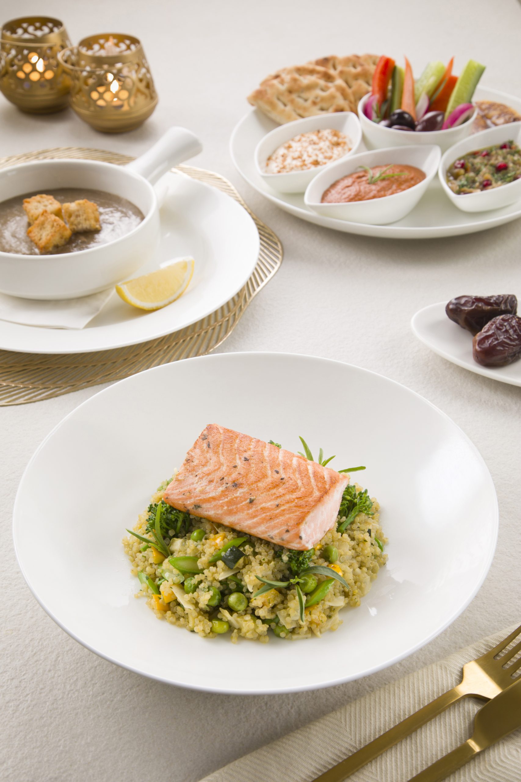 For the main course, the menu offers an array of exquisite options, from Slow Braised Lamb with fragrant Levant-style rice, to Greek Grilled Chicken made with premium corn-fed chicken from France, a delectable Scottish Salmon Quinoa, and a vegetarian Roast Pumpkin Ravioli, all made with premium, sustainably sourced ingredients.