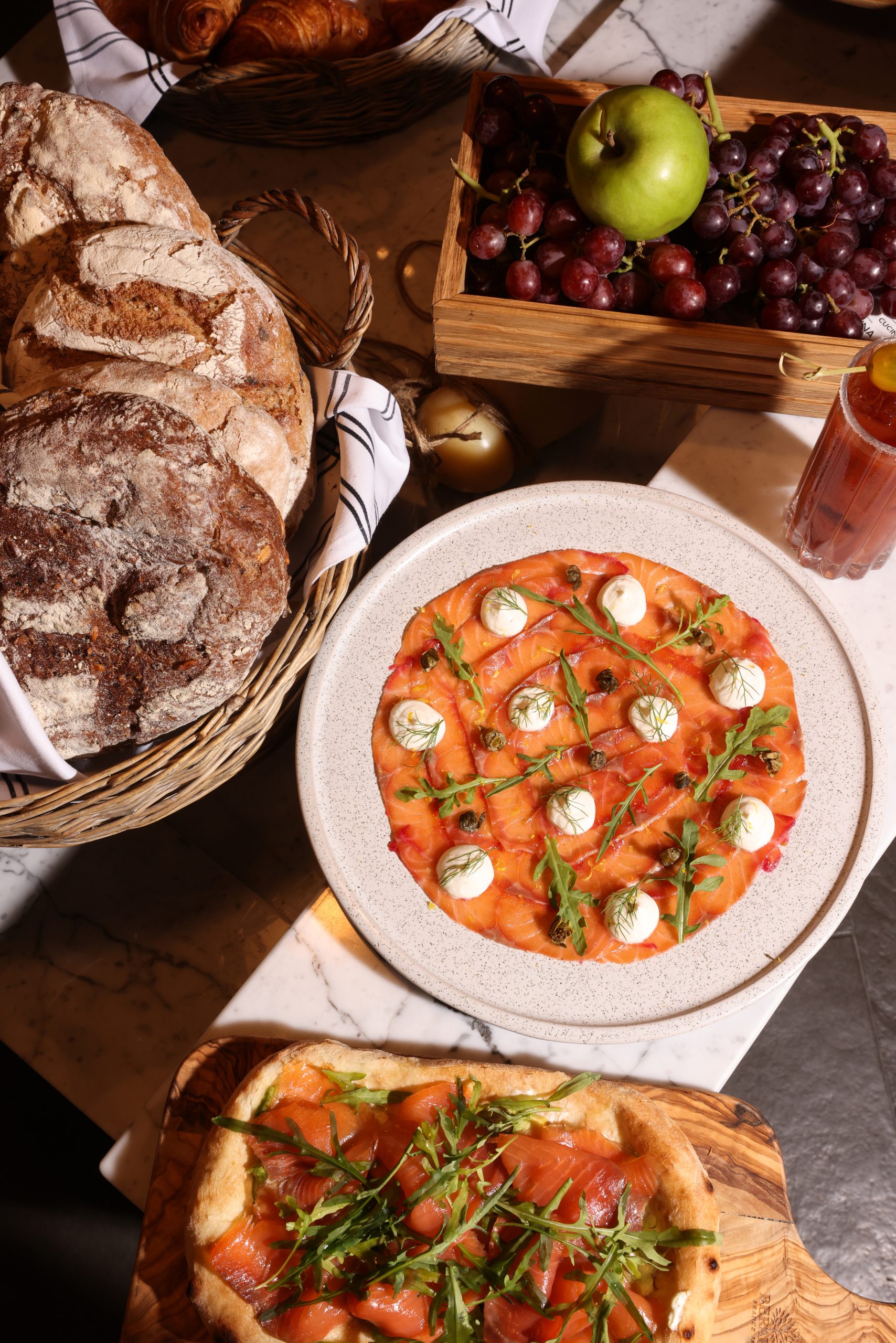 Diners are also treated to an assortment of freshly baked Italian pastries and breads, paired with homemade compotes, jams, and spreads, to savour the taste of Italian culinary tradition.
