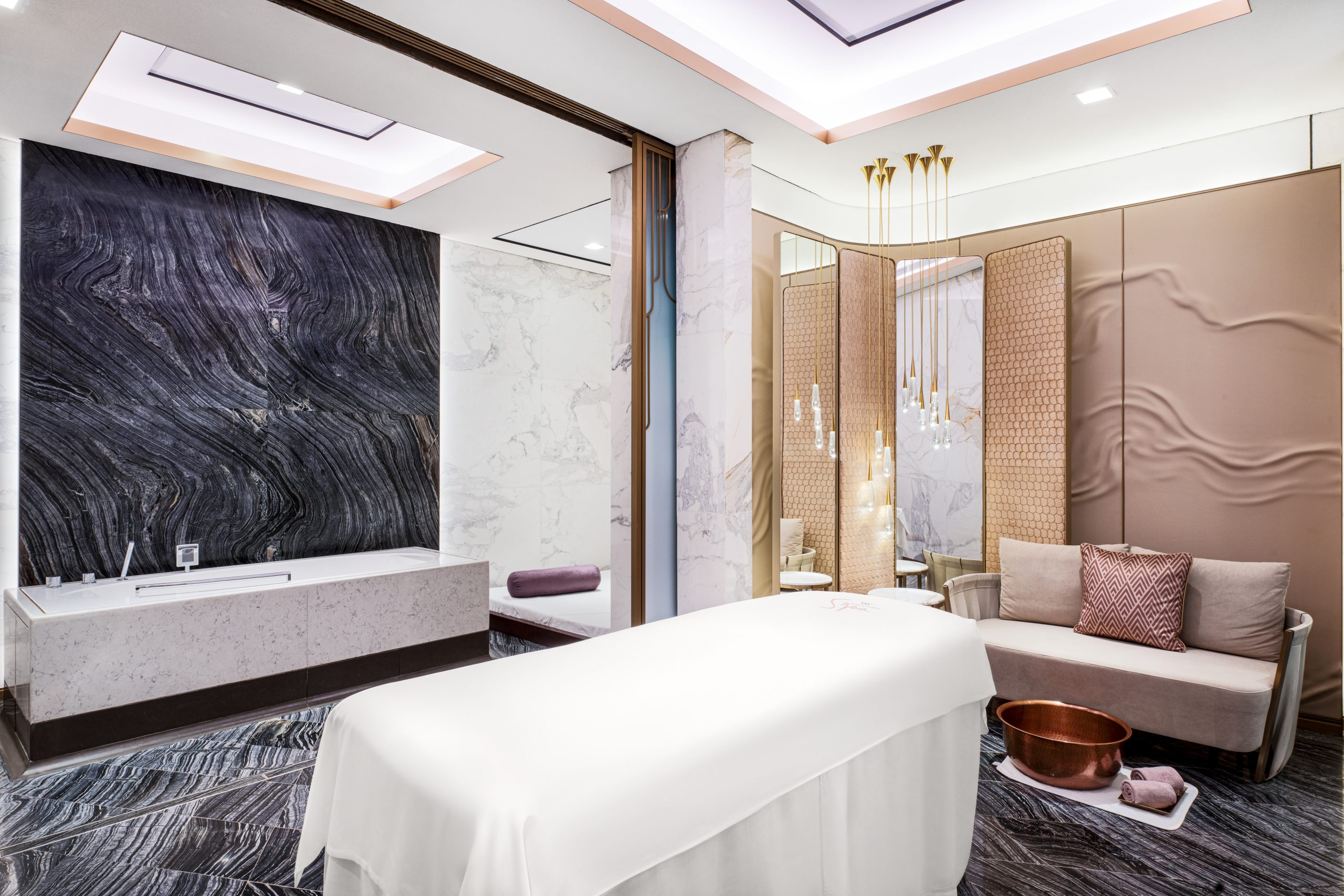 Relax and beat the heat in our lavish pool area, where private cabanas offer ultimate tranquillity, particularly in the evenings. Guests can elevate their stay with a visit to the Waldorf Astoria Kuwait Spa, where a range of wellness experiences are designed to promote relaxation, rejuvenation, and overall well-being. With state-of-the-art facilities, a team of highly skilled therapists, and a selection of premium treatments and services, guests can indulge in a truly incredible spa experience.