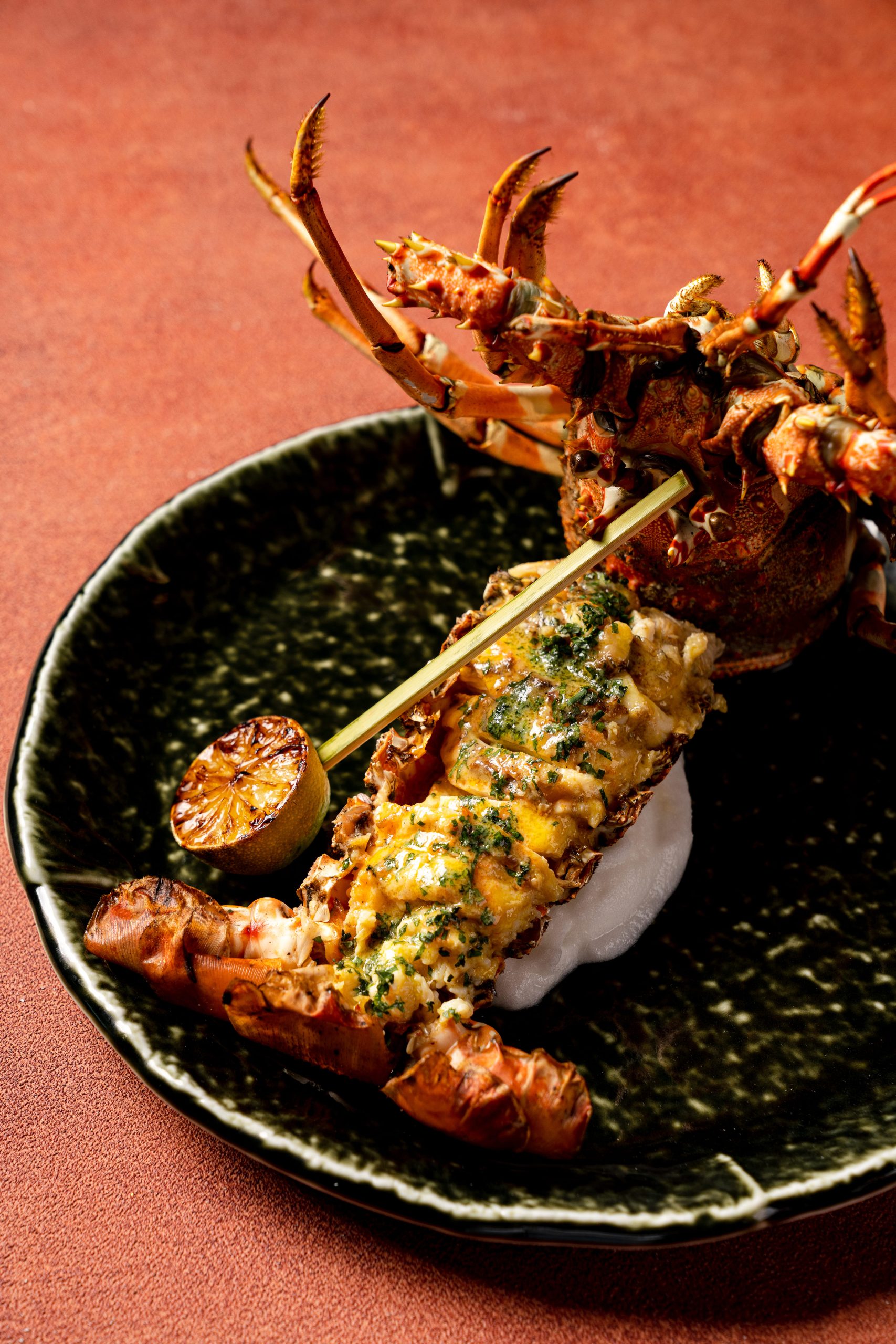 Guests are greeted upon arrival by the Tsukimi Lounge, designed to evoke the peaceful ambience of a full moon harvest. The main dining area, centred around an open grill, features golden drapery that reflects the flickering of flames, adding to the immersive experience. The interior design, with its handcrafted wood panels and custom furniture, complements the Warayaki cooking style, creating a unique atmosphere for diners.