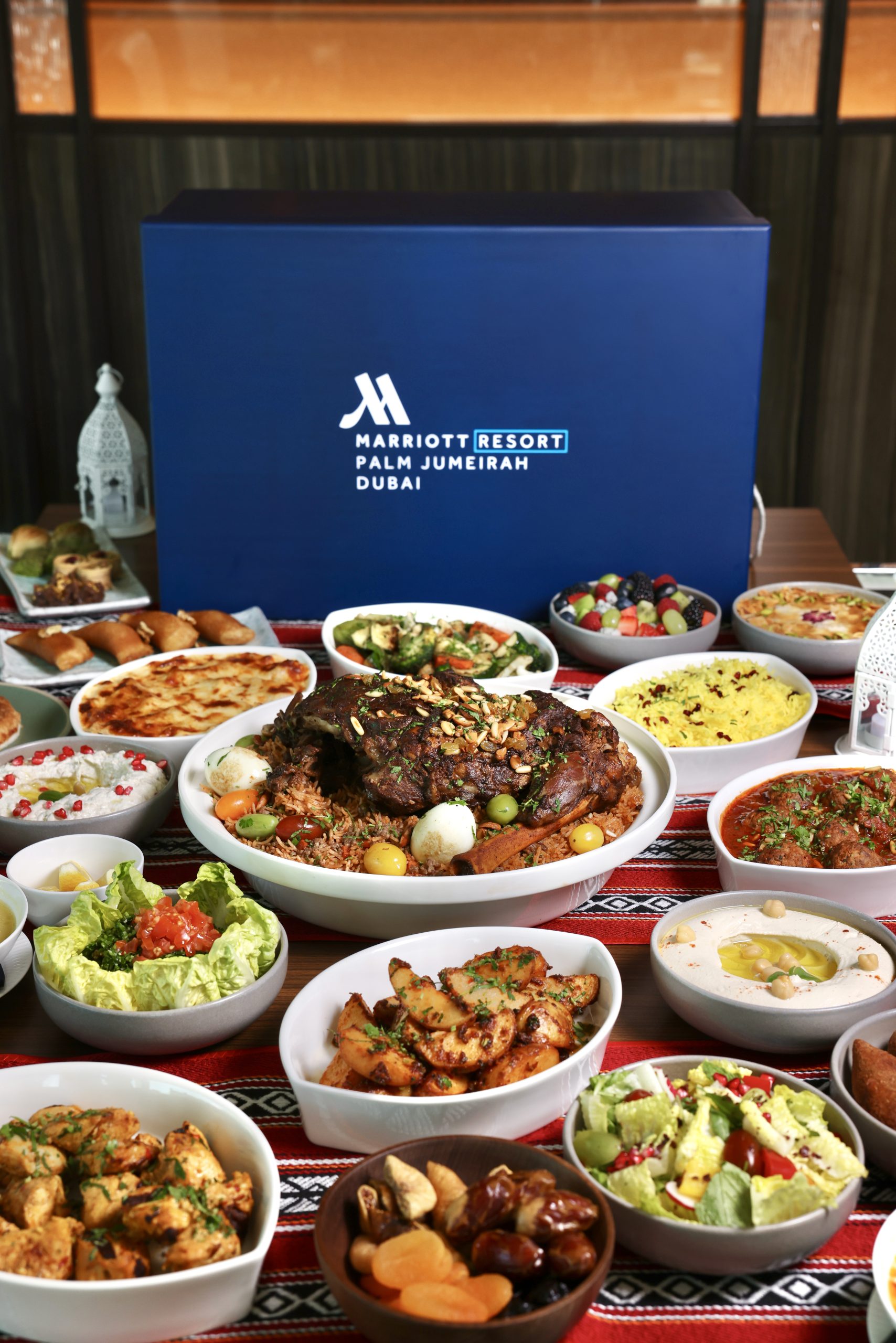 Daily, from 4-8pm. Iftar at Home Box (Serves up to 6 guests) for AED795. Pre-order 24 hours in advance. Call +9714 666 1430 or email dine.palmjumeirah@marriotthotels.com.