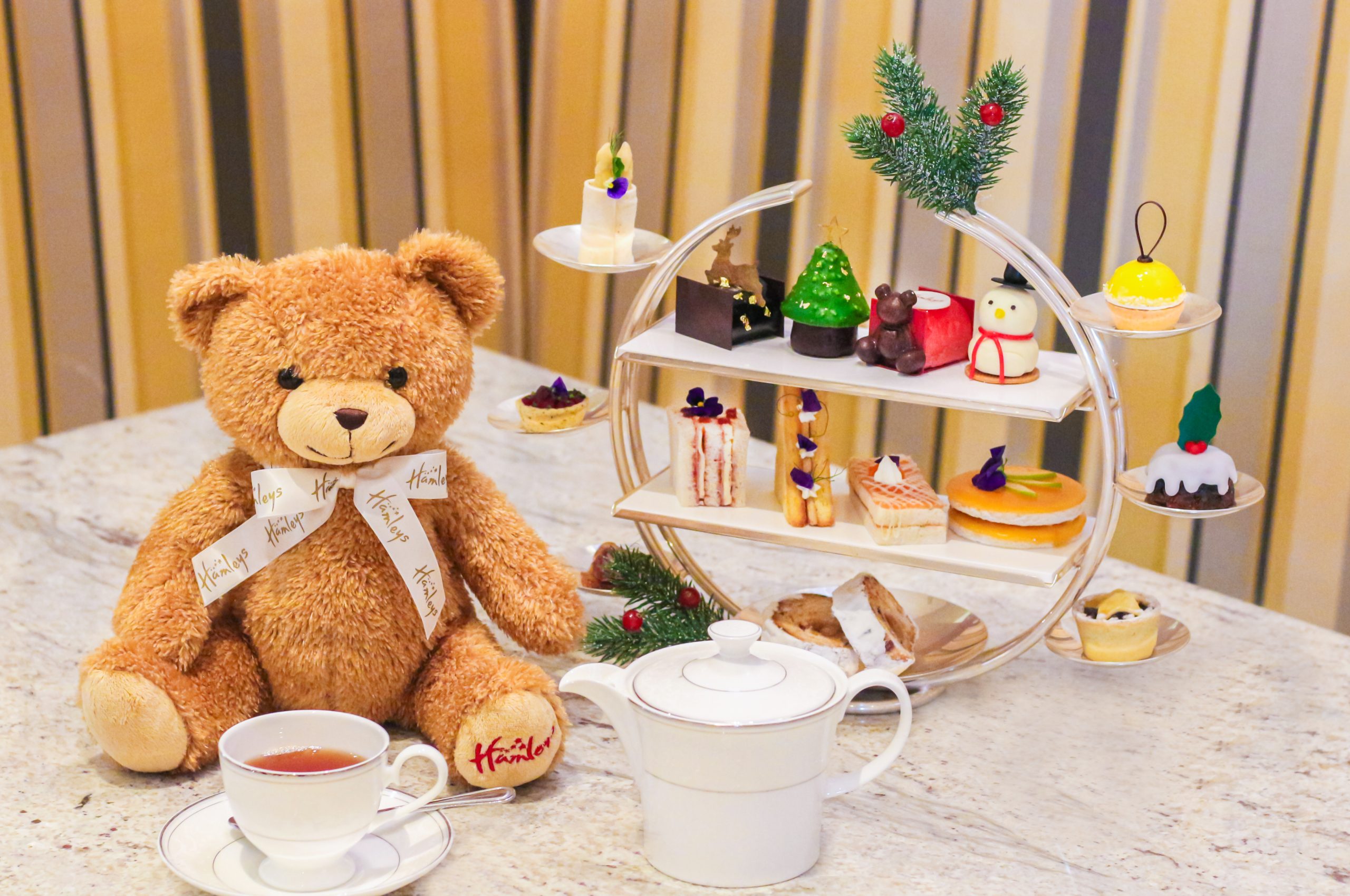 In partnership with Hamley’s Toy Store, patrons can partake in a Christmas-themed three-tier high tea experience featuring meticulously crafted savoury and sweet treats, including mini cakes and scones. This indulgent affair is complemented by the artful preparation of the most delicate and distinctive seasonal teas sourced from the esteemed London Tea Exchange.
