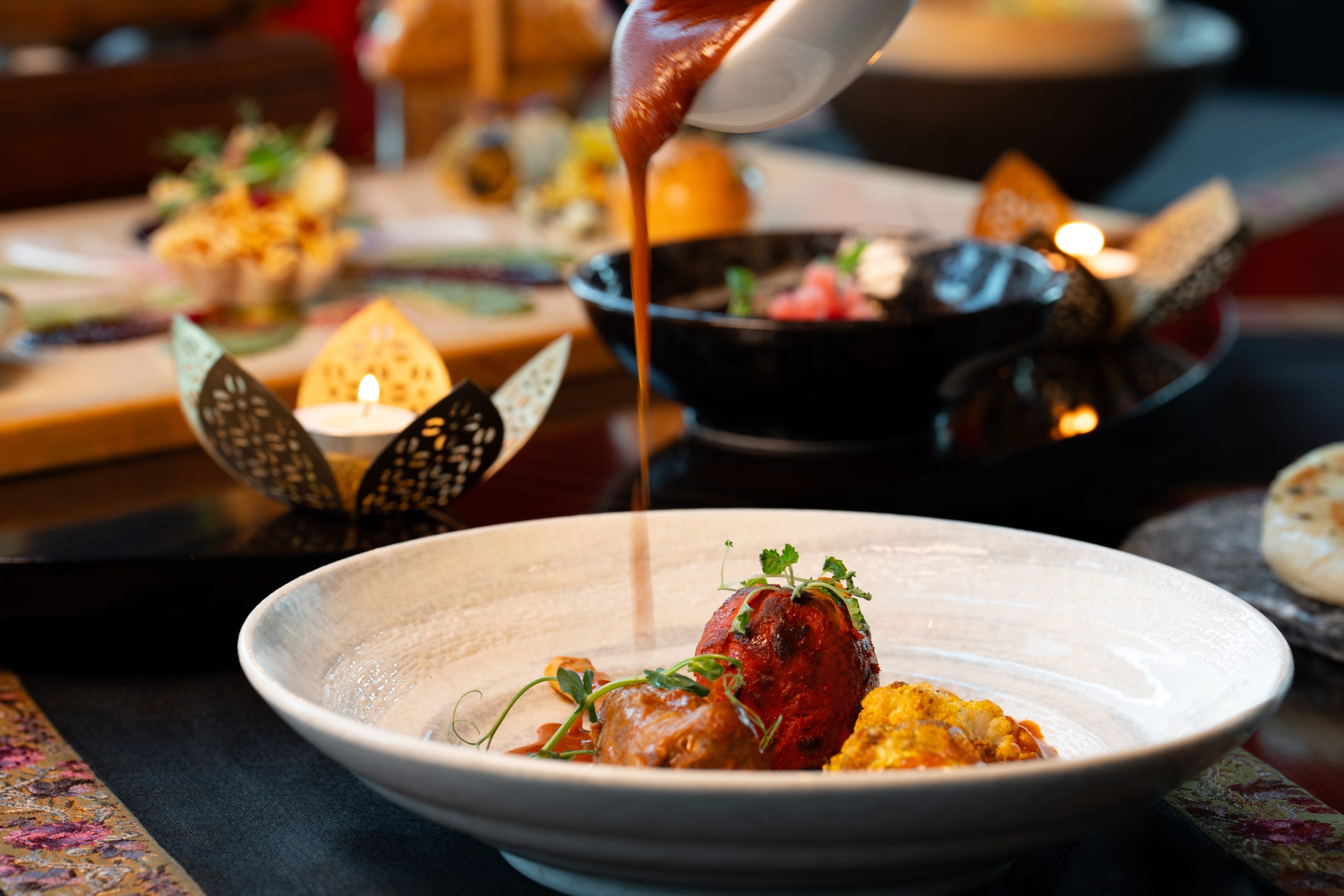 Jamavar Dubai has teamed up with Good Earth India for A Feast in Chahar Bagh, a Diwali menu inspired by the fragrance and abundance of Mughal gardens. Over four courses, expect dishes such as Khasta Kachori with pomegranate molasses, tender Kid Goat Shami Kebab, and Murgh Nihari with saffron pulao, finishing with a cardamom Gajrela. Guests can also try the Saffron Breeze, a blend of coconut rum, saffron, cardamom, and grapefruit.