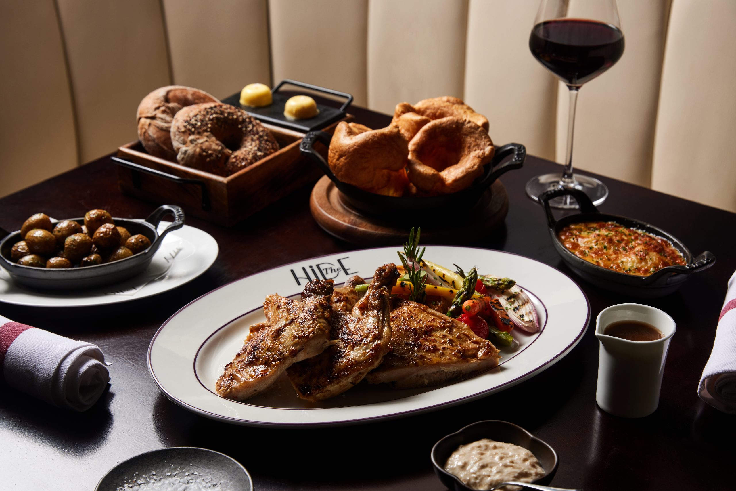 Set in the brasserie’s stylish, understated setting, the offering centres around an interactive carving station, where chefs slice generous cuts of Wagyu beef, tender leg of lamb, and golden roast chicken to order. The accompaniments are just as considered: roast potatoes crisped with rosemary, Yorkshire puddings with a proper rise, and rich gravy made from bone broth. To amp up the dining experience, there’s truffle mac and cheese and silky mashed potatoes on the side.