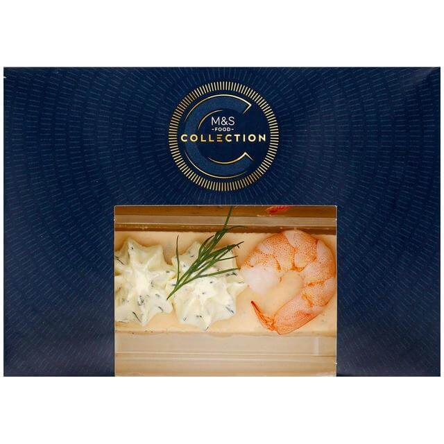 M&S Collection 2 Prawn & Salmon Terrines (155g)AED 65 – Two slices of prawn, salmon and dill mousse topped with a Honduran king prawn and finished with cream cheese and dill.
