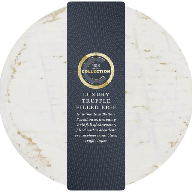 M&S Collection Luxury Truffle Filled Brie (250g), AED 52 – This handmade rich creamy brie is hand-filled with decadent cream cheese and black truffle layer.