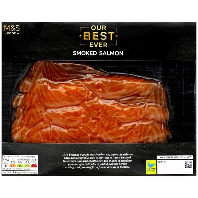Our Best Ever Smoked Salmon (100g), AED 62 – This tender smoked salmon is cured with handcrafted Halen Môn™ sea salt and twice smoked over oak and chestnut to give a delicate, rounded flavour.