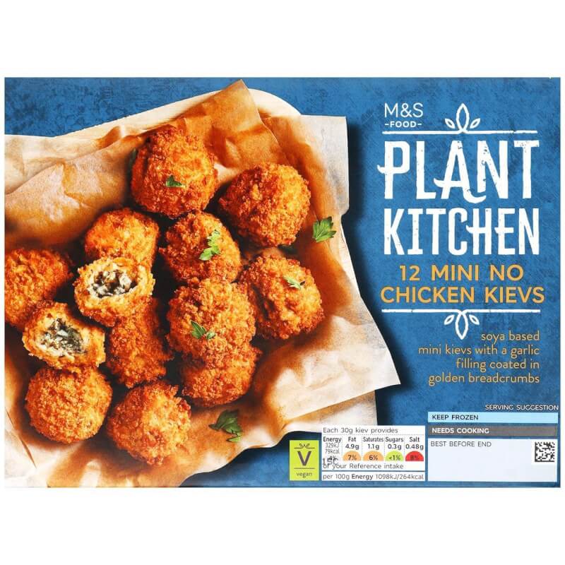 Plant Kitchen 12 Mini No Chicken Kievs (360g), AED 40 – Soya-based mini kievs with a garlic and parsley filling, coated in golden breadcrumbs.