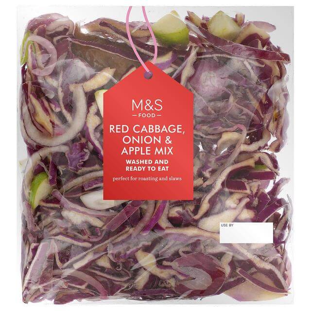 Red Cabbage, Onion & Apple Mix (450g), AED 22 – Conveniently pre-sliced red cabbage, red onion and apple with a honey, orange and spice dressing. Simply pour the spiced glaze on top and cook in the oven.