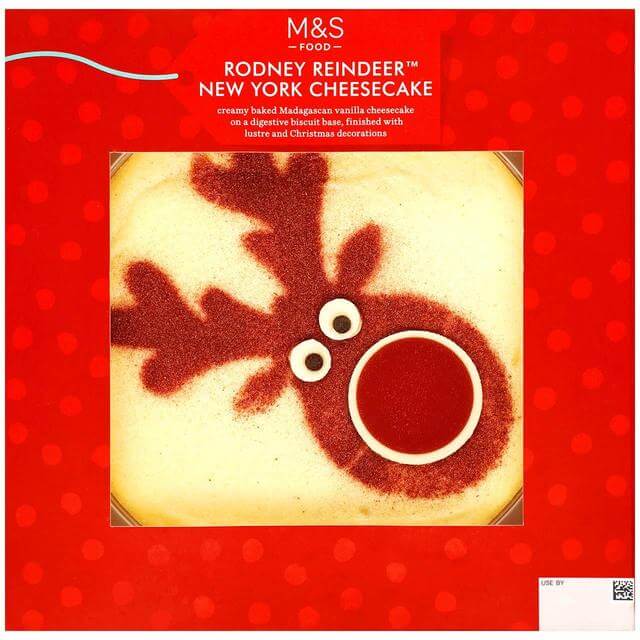 Rodney Reindeer New York Cheesecake (1kg), AED 129 – Creamy baked Madagascan vanilla cheesecake on a digestive biscuit base finished with edible lustre and a fun reindeer face.