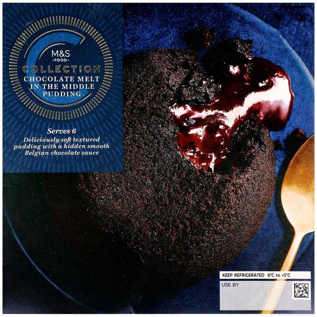 M&S Collection Chocolate Melt in The Middle Pudding (680g), AED 79 – Tasty soft chocolate pudding with a hidden smooth Belgian chocolate sauce centre. Heat in the oven or microwave and serve with ice cream.