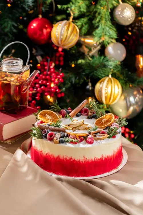 This Christmas Carrot Cake is a spiced festive delight, packed with carrots, a hint of citrus, and topped with creamy cream cheese frosting and holiday decorations.