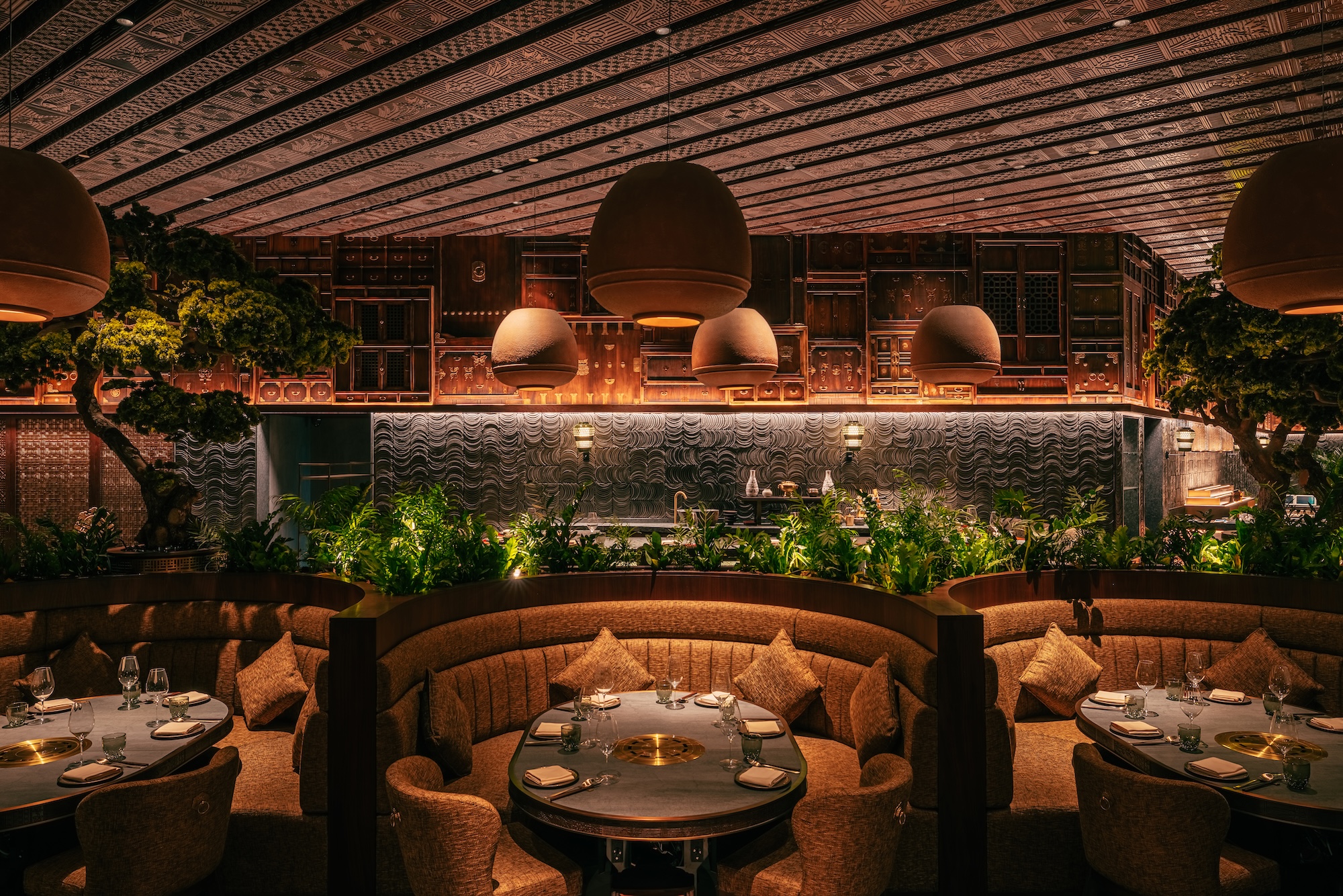 Located in The Lana Promenade at Business Bay, China Tang Dubai brings the glamour of 1930s Shanghai and the Cantonese dining legacy of Sir David Tang to Dubai. Spanning two levels, the venue features Art Deco interiors, mirrored ceilings, custom stained glass panels, and a dramatic duck oven room. Under Chef Li Zhenjun, the menu balances classics such as Sir David’s Hot and Sour Soup, Beijing Duck carved tableside, and prawn har-gau with Dubai-exclusive dishes such as Honey-Glazed Beef Char Siu, Foie Gras Cherries, and Sichuan oil poached coral grouper.