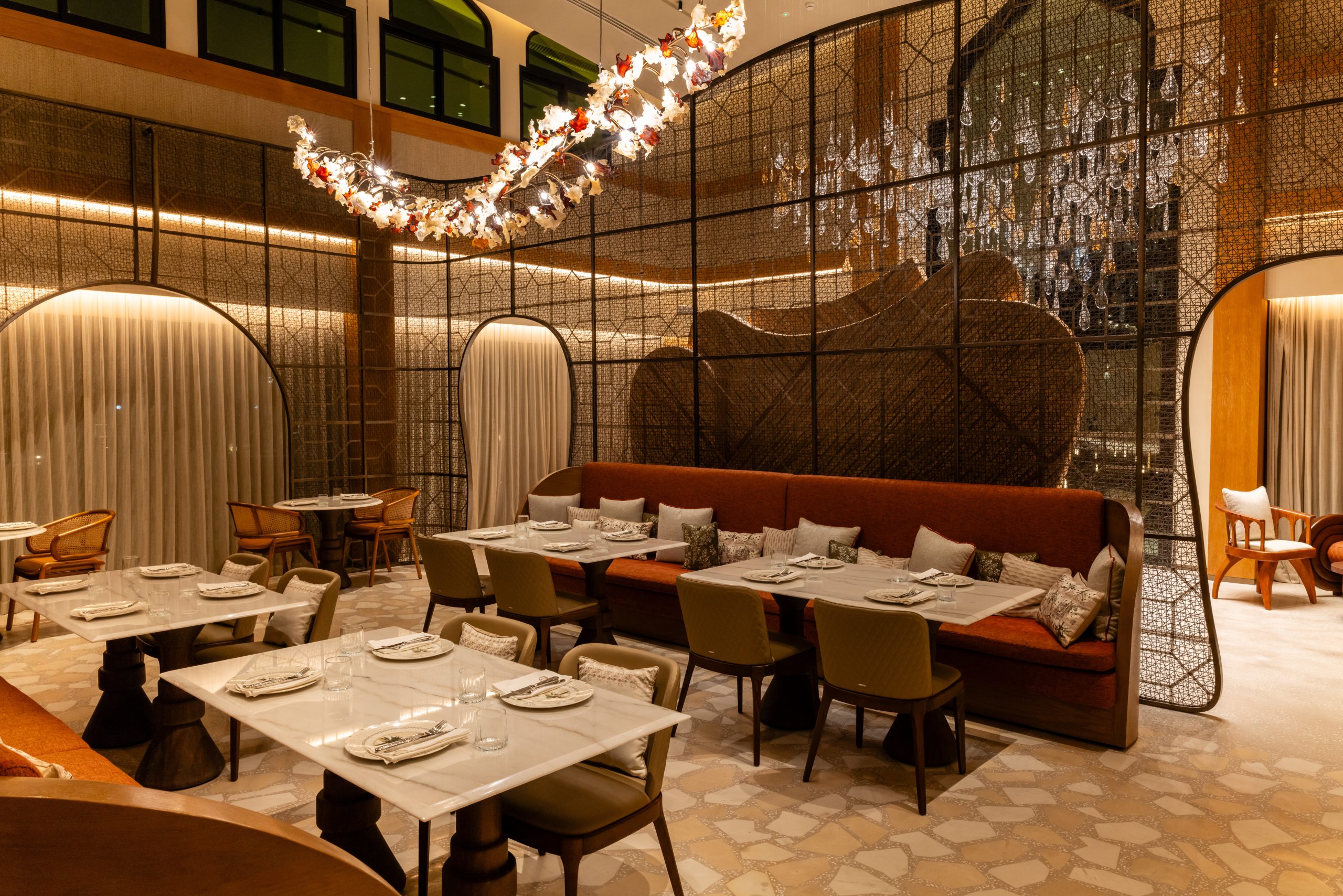 Gerbou is a unique culinary concept that redefines Emirati-inspired cuisine with a modern twist, blending local flavours with global influences under the expertise of Chef Ionel Catau and award-winning Chef Sahar Al Awadhi. The restaurant’s design seamlessly marries Emirati traditions with contemporary aesthetics, featuring handcrafted furniture, locally inspired decor, and an underground pit cooking technique that infuses dishes with rich, smoky flavours. Nestled in a beautifully restored 1987 building, Gerbou pays homage to the UAE’s heritage with thoughtful details such as the Ghaf Tree front desk, a bronze sculpture symbolising preservation, and a striking Herbarium chandelier, creating an extraordinary dining experience.