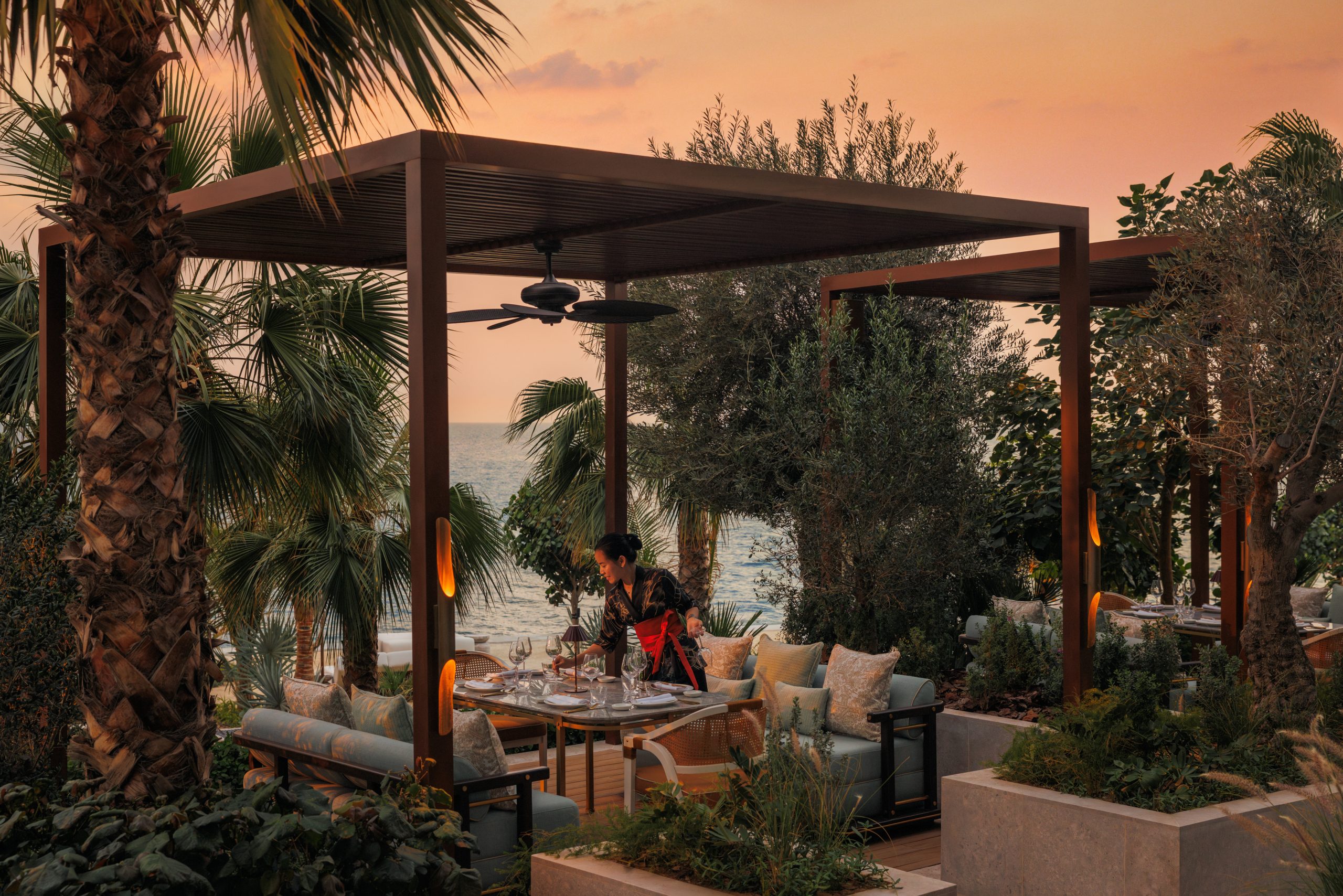 This September, MEI opens at Jumeirah Mina Al Salam, a restaurant that blends Chinese and Japanese influences. Guests step through grand pivot doors into warm, art-filled interiors with woodwork, murals, and a golden glow, or head out to the terrace with sweeping views of Burj Al Arab. On the menu, robata-grilled meats and seafood sit alongside dim sum, claypots, duck specials, and Japanese dishes flown in fresh from Toyosu Fish Market in Tokyo.