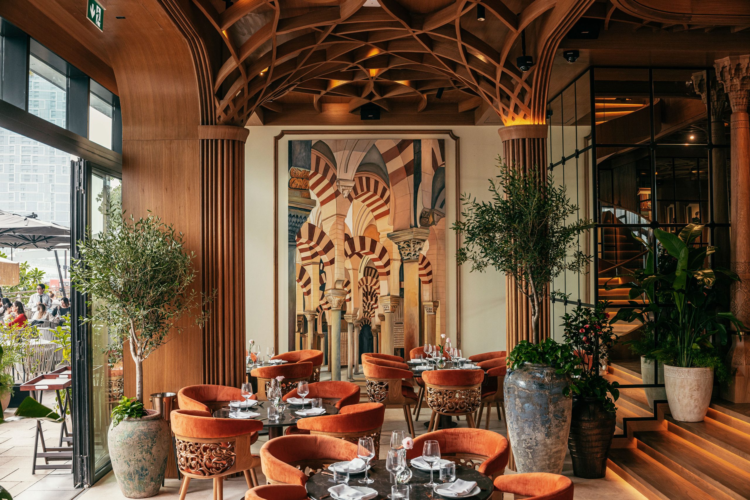 Drawing inspiration from the rich history of Moorish Spain, the new restaurant blends traditional flavours with contemporary creativity, serving dishes such as Tuna Tartar with Arabic spices and Lamb Shoulder infused with smoky saffron. The elegant setting, complete with warm terracotta tones and intricate Moorish patterns, extends to an intimate outdoor space with stunning skyline views.