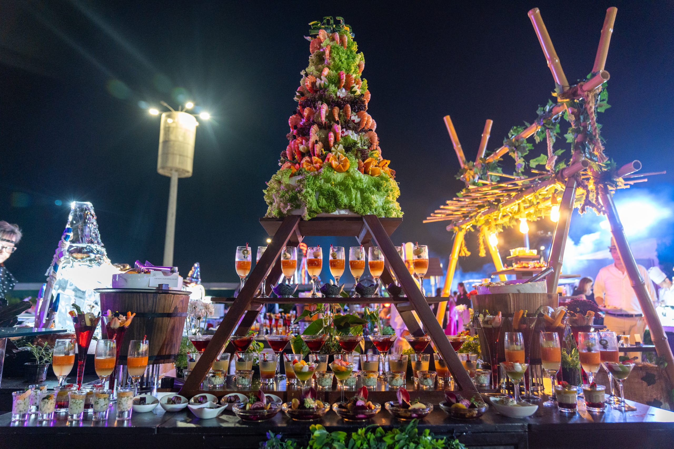 At Waldorf Astoria Ras Al Khaimah, you’ll experience a night like no other, with the emirate setting a Guinness World Record for the longest straight-line drone show, followed by an 8-minute fireworks display. As the evening unfolds, guests are invited to enjoy a sumptuous New Year’s Gala Dinner. The buffet features an array of international dishes, each thoughtfully prepared to satisfy every palate. Alongside this culinary feast, the live performances from the renowned “4 The Music” band and the energetic DJ Elton Frans will ensure entertainment throughout the night.
