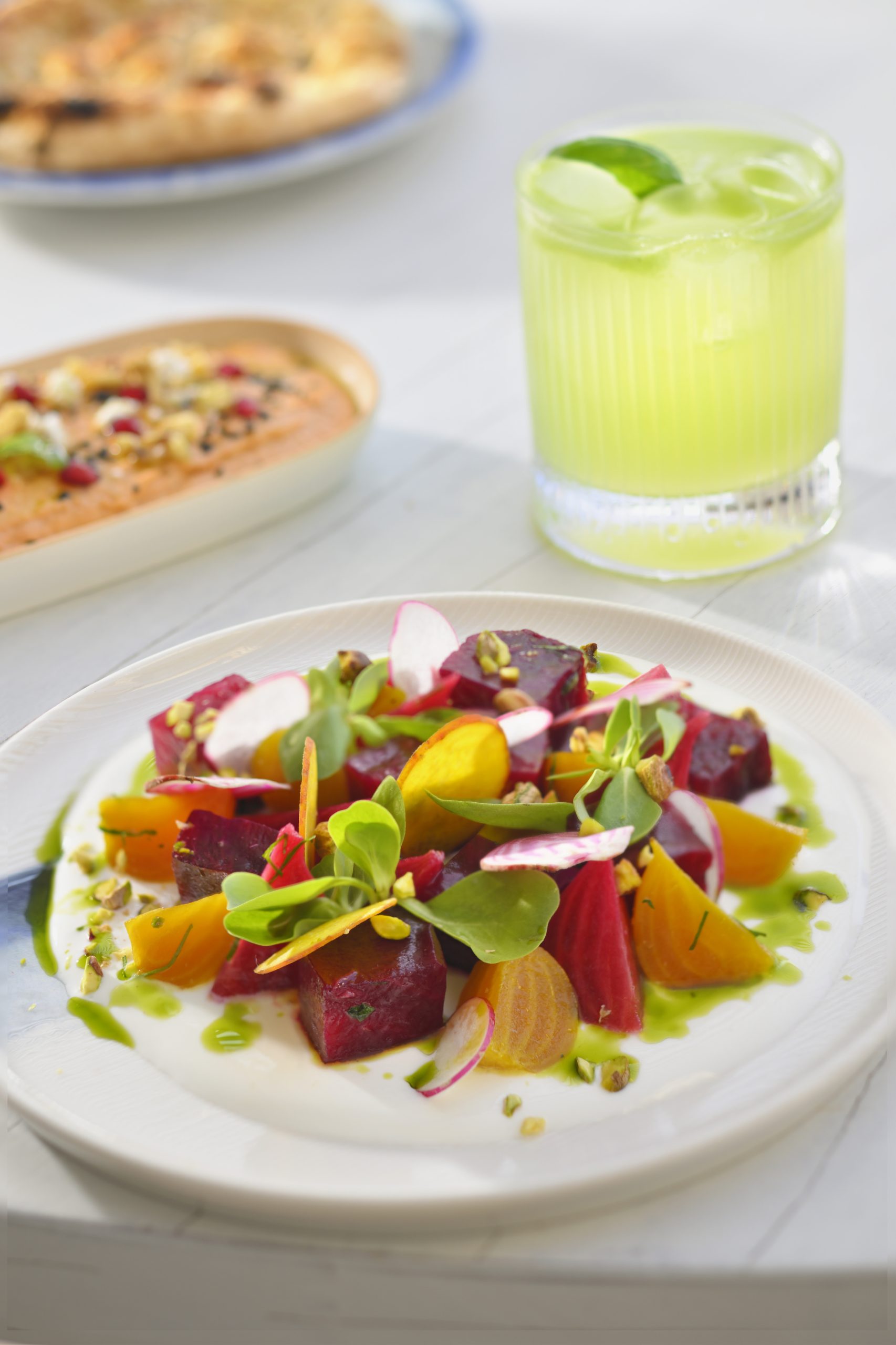 OIA introduces a slice of Greece to JBR, offering a poolside escape inspired by the Aegean. Diners can enjoy stunning views of the Arabian Gulf and Ain Dubai, with an ambience featuring whitewashed walls, blue accents, and a cobblestone terrace reminiscent of Santorini.