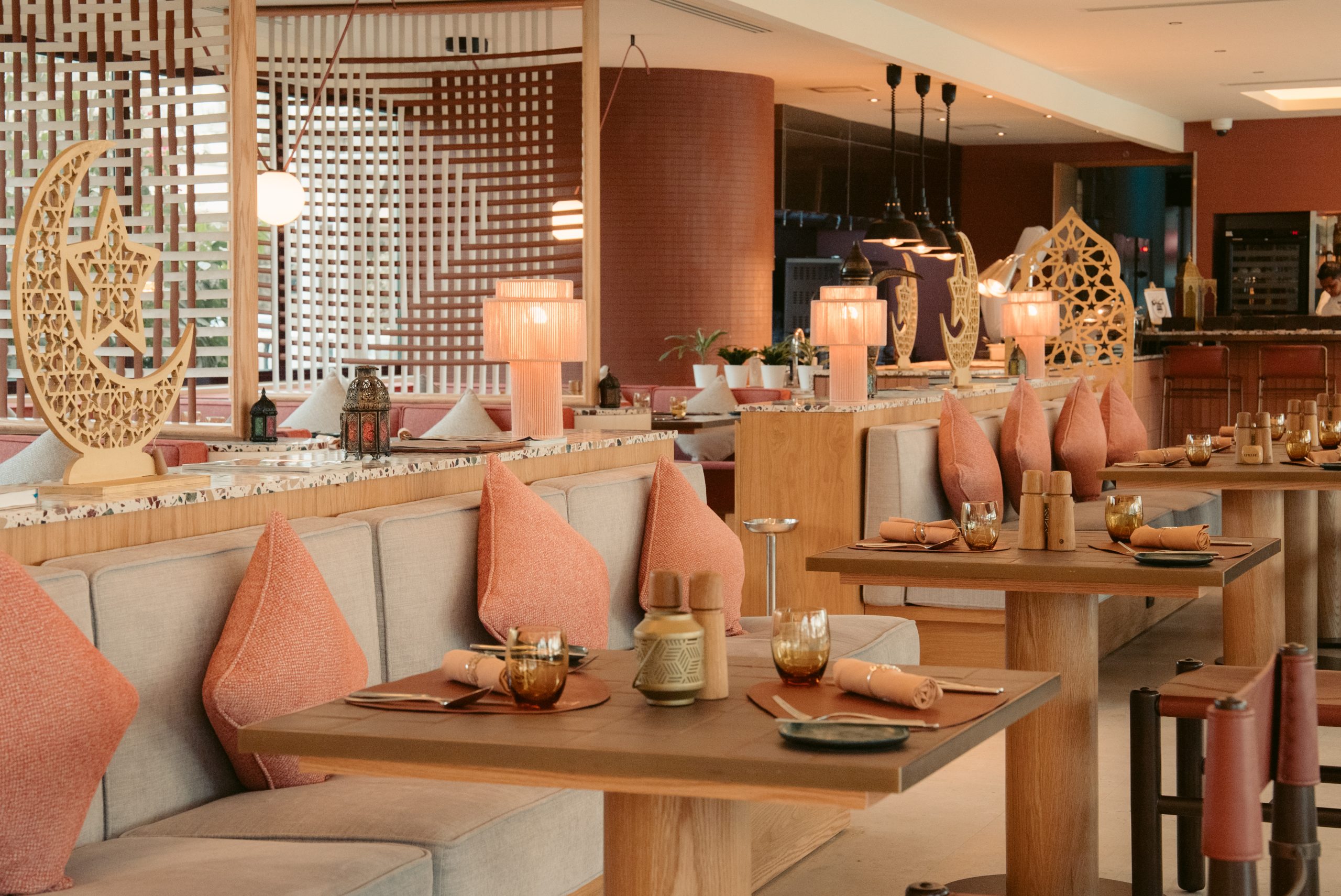 Just 20 minutes from Downtown Dubai, Meliá Desert Palm Dubai invites guests to experience a serene Ramadan evening at Epicure. As the sun sets, the tranquil poolside setting transforms into an elegant space for Iftar, where Levantine and Mediterranean flavours take centre stage, complemented by the soulful melodies of a live oud player. The daily buffet features multiple interactive stations and a generous selection of traditional Ramadan favourites, offering a laid-back dining experience.