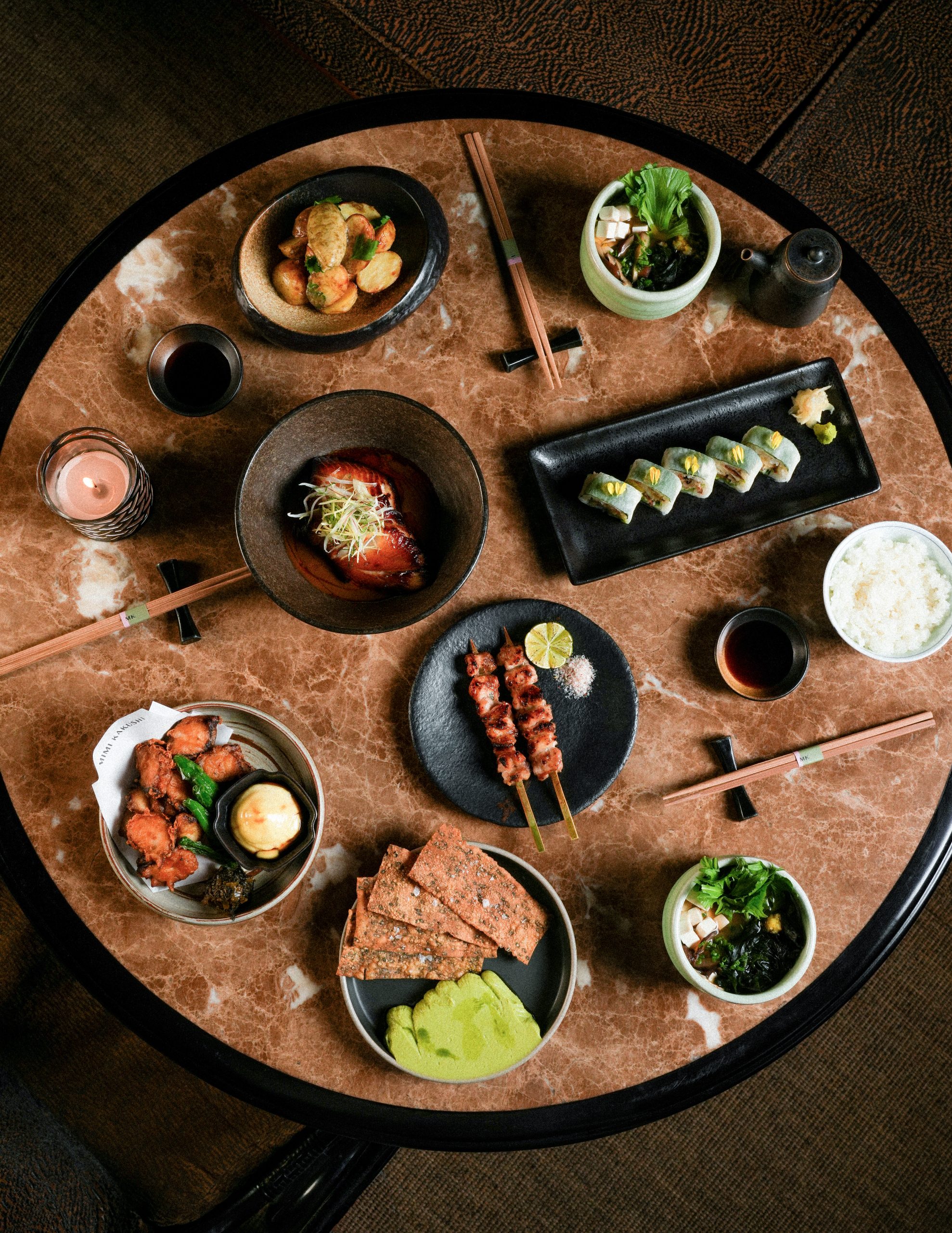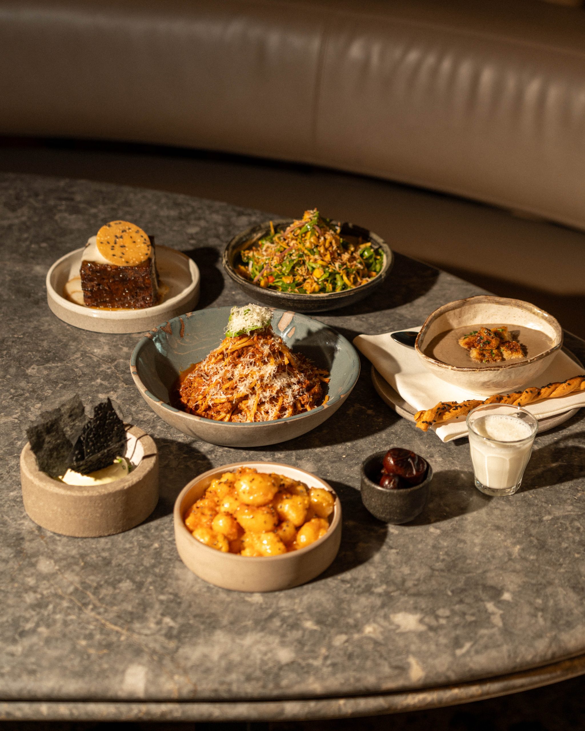 KIRA marks Ramadan with a sharing-style Iftar. The experience begins with dates and nuts, followed by lentil soup with a Japanese spice blend and Mediterranean pickles, before moving into lighter dishes such as avocado and edamame salad, burrata panzanella, patata brava with yuzu aioli, and wagyu ragù gyoza. Guests then choose a main course from options including Angus tenderloin with peppercorn sauce, woodfire-roasted lobster with peri-peri beurre blanc, smoked lamb shank, baby chicken glazed with ume and ginger, or cauliflower piccata. Desserts are designed for sharing, with kokuto crème caramel, Granny Smith mille-feuille, and KIRA’s signature karak brioche served with Hokkaido milk ice cream.