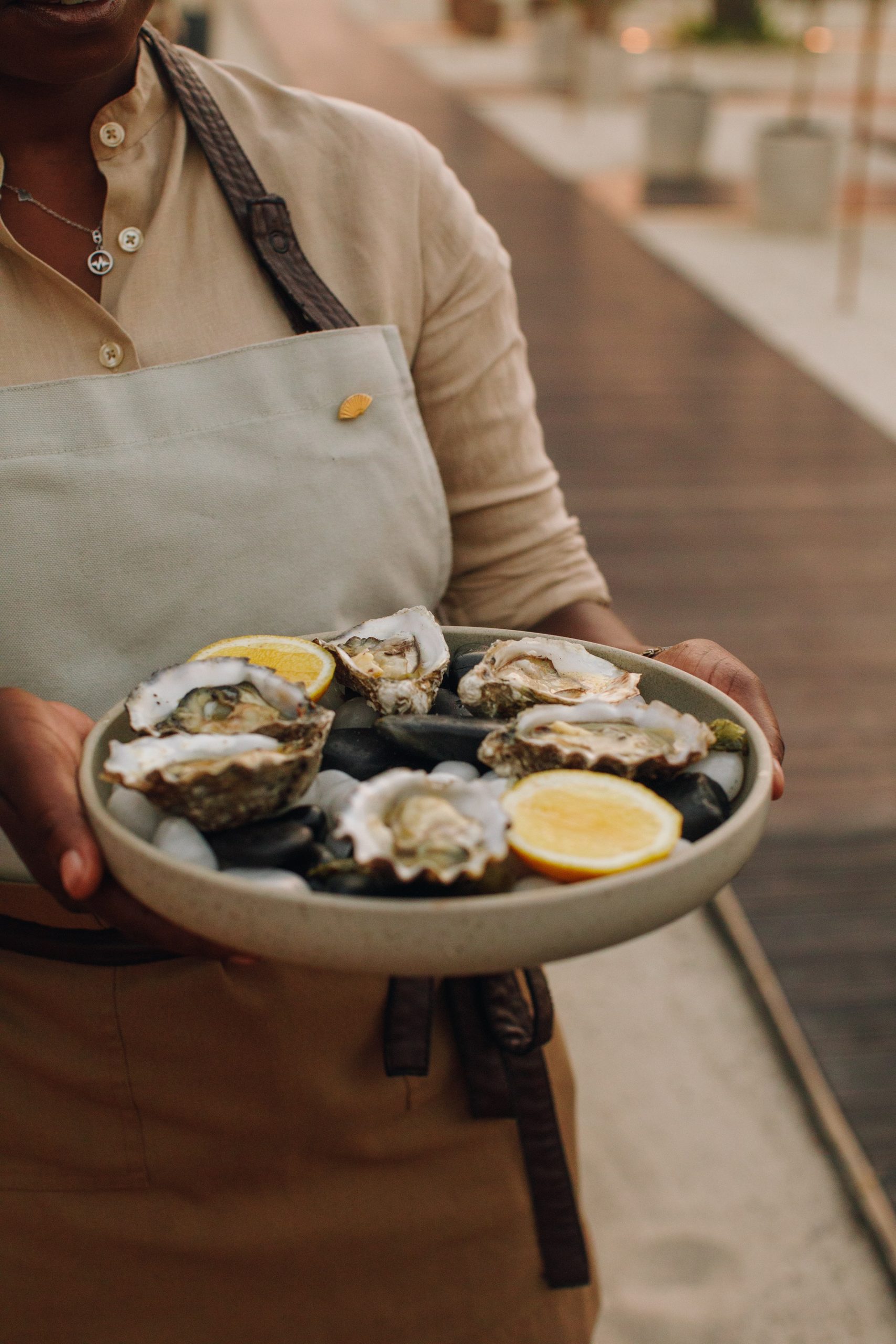 The menu boasts wholesome vegetable-based recipes, raw, smoked, and charred seafood, unique meat cuts, grilled skewers, and delightful crudos. Dishes are skillfully finished table-side, emphasising entertainment and interaction, with minimalistic plating allowing the natural flavours to shine and be enhanced by smokiness from the grill.