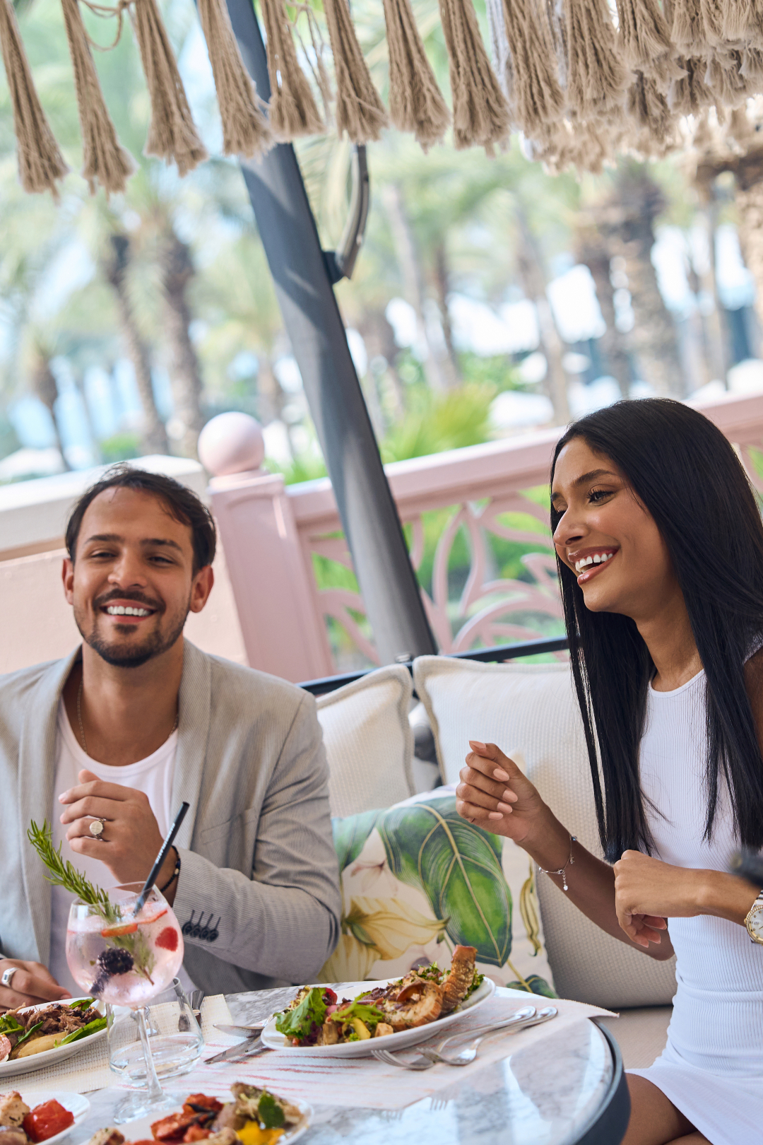 Hosted inside a lavish glass-enclosed space, it offers respite from the heat without losing the ambience of dining outdoors. The setting is calm, softened by views of swaying palms and still waterways, with a layout that moves through live stations and well-executed classics.