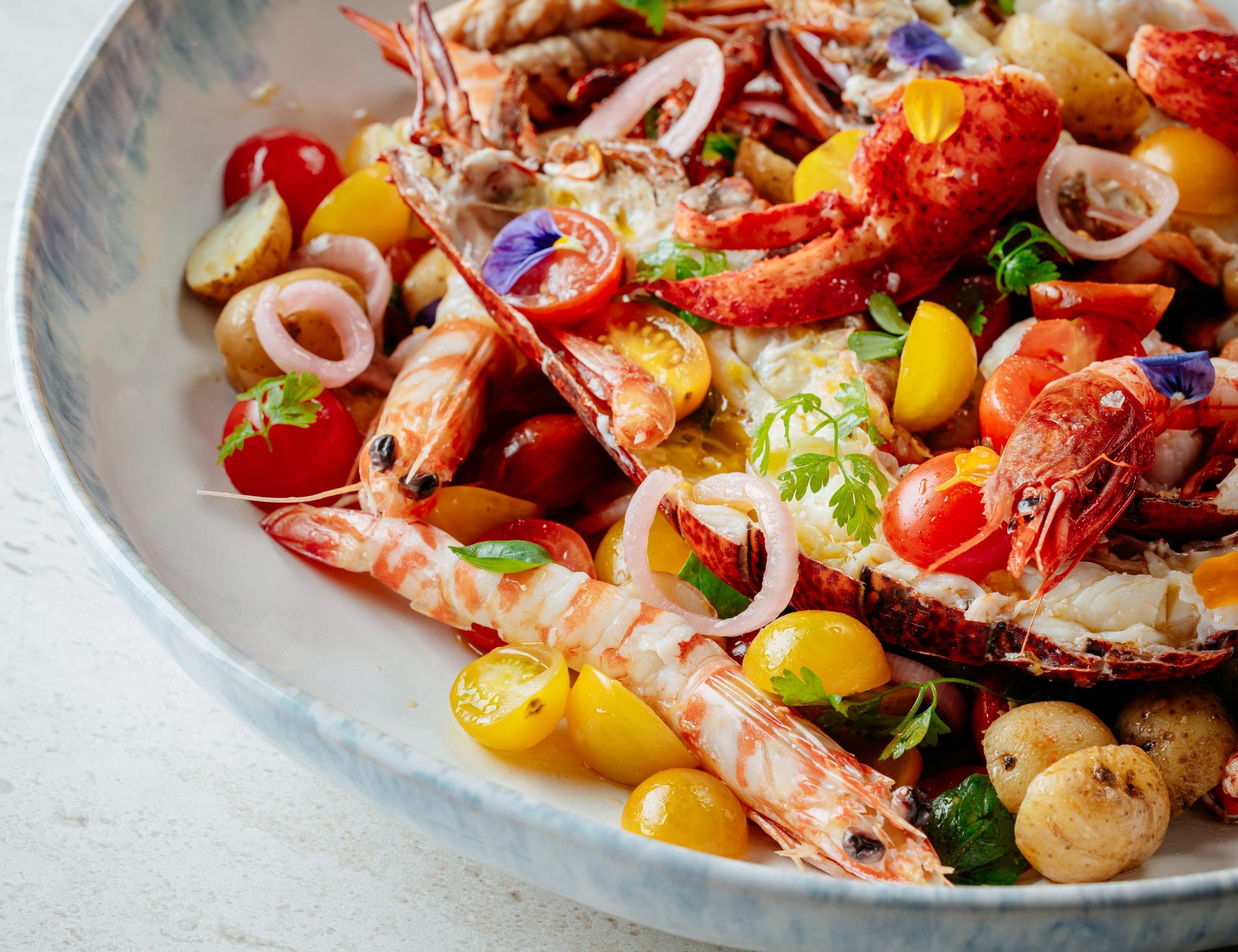 Looking for a quiet, laid-back dining experience in Dubai? La Promenade at Jumeirah Al Qasr offers a sumptuous summer menu perfect for sharing. With an incredible focus on quality ingredients, guests can indulge in a seasonal two- or three-course Summer Saveurs menu that celebrates the richness of traditional French cuisine, elevated through modern techniques. The meal begins with a variety of starters, from avocado shrimp salad and chilled burrata to a decadent truffle pizzetta. Mains are seasonally inspired, with options such as marinated salmon, corn-fed chicken, ratatouille, and asparagus risotto. Desserts include a rotating tart of the day, citrusy polenta orange cake with lemon sorbet, and a rich 70% Valrhona chocolate mousse.