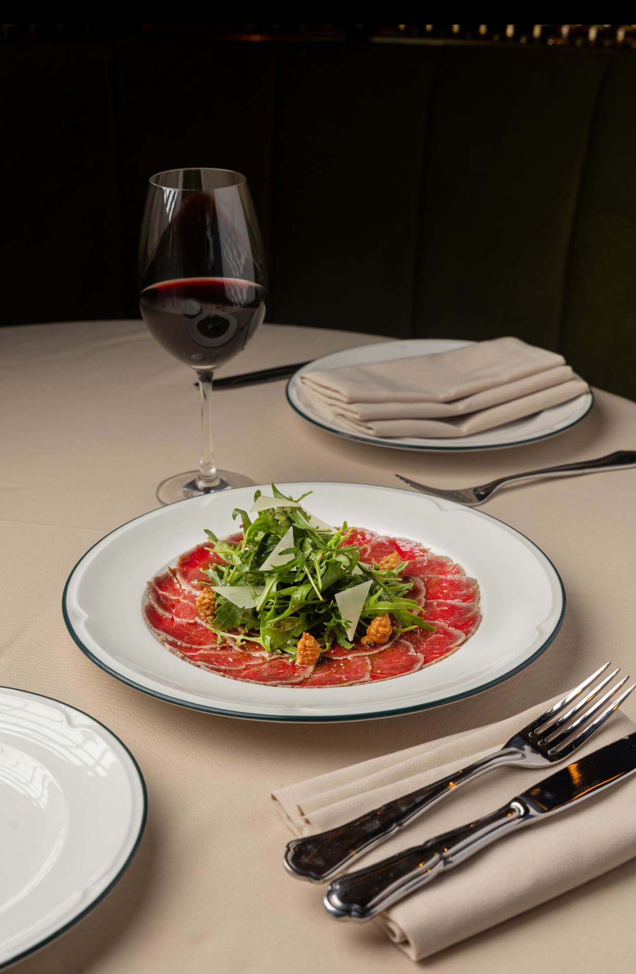 THREE CUTS offers an unforgettable evening of modern luxury and old-school charm with a curated dining experience. The one-page menu features three classic cuts – striploin, tenderloin, and ribeye – alongside chef’s specials like porterhouse and tomahawk steaks.