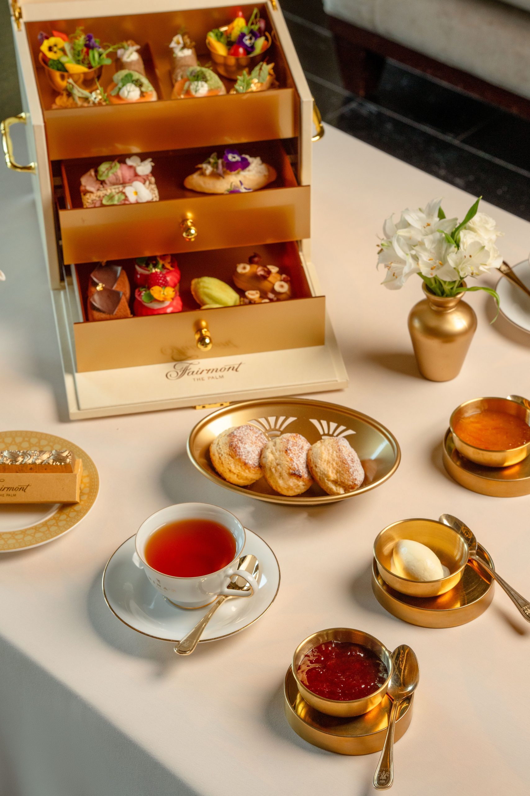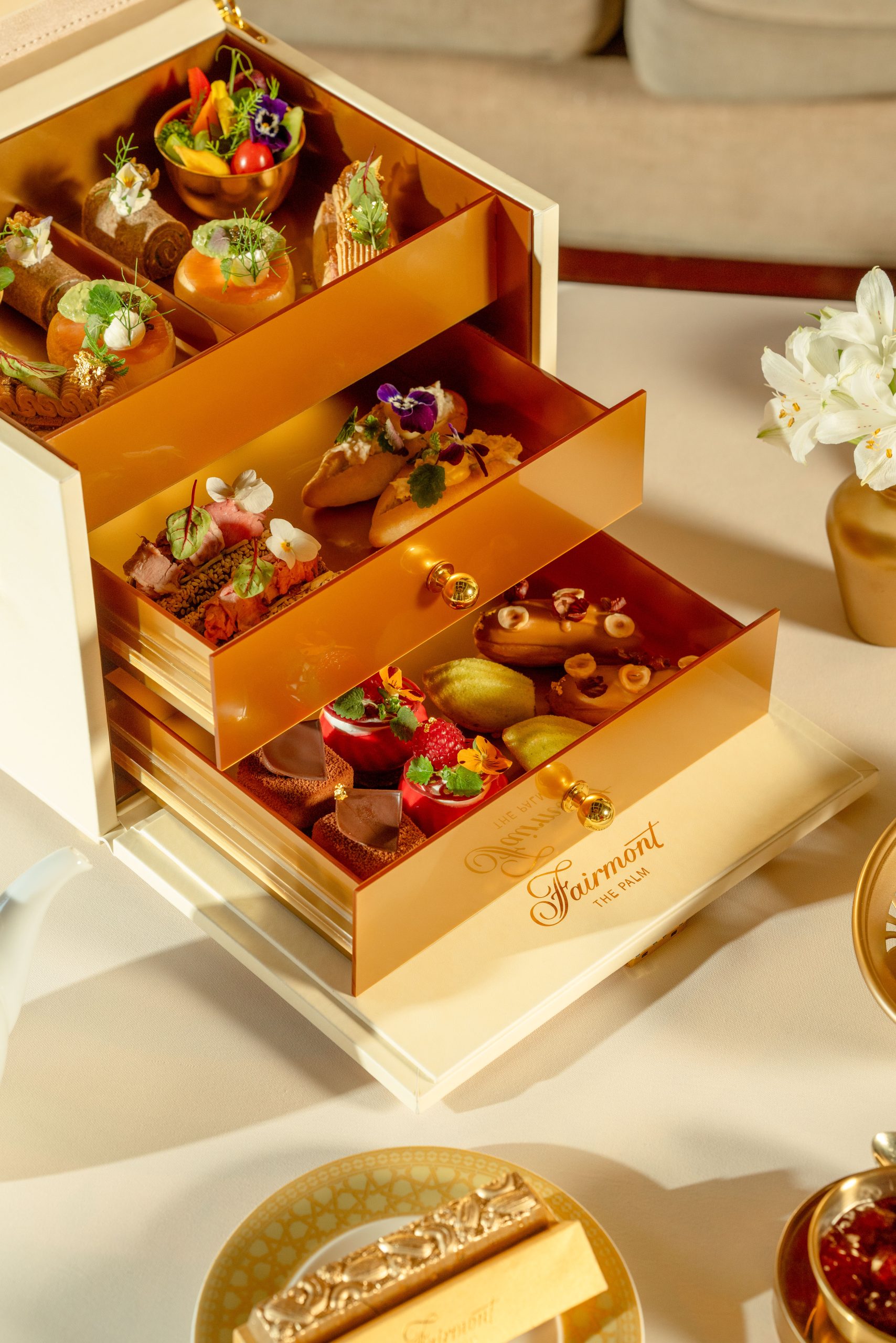 Fairmont The Palm has launched its Golden Afternoon Tea, offering a luxurious selection of savoury and sweet delights presented with a lavish golden touch. Inspired by the region’s cultural heritage, the afternoon tea features exquisite dishes such as foie gras with golden brioche and smoked salmon with caviar, alongside impressive sweet treats including salted caramel éclair and raspberry vanilla cheesecake.