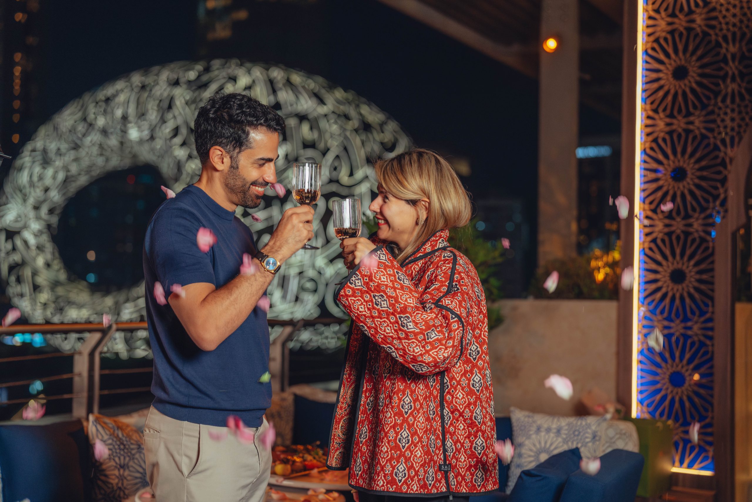 Celebrate Valentine’s under the stars with panoramic rooftop views and an intimate dining experience. Enjoy a four-course menu, live entertainment, and a bottle of bubbly, with the option to add a curated floral bouquet for AED250 across all outlets.