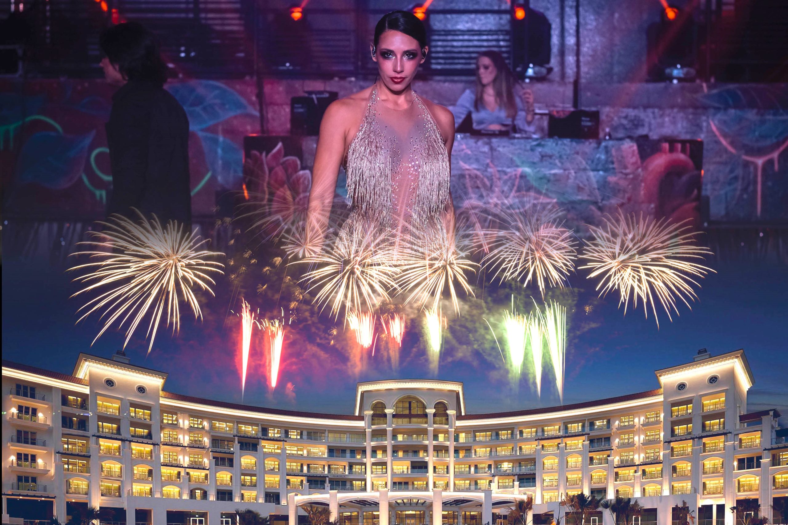 As midnight approaches, behold the vibrant Dubai skyline adorned with a spectacular fireworks display, creating a memorable New Year’s Eve tradition, and extend the festivities into the early hours with an unforgettable after-party at the Lagoon pool.