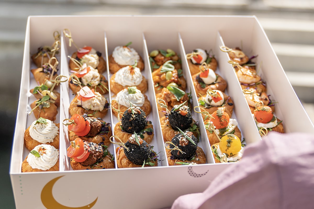 If you prefer savoury treats, meet the Ramadan Savory Box showcasing a range of mini savouries, from Arancini and Caprese bites to more Arabic-infused bites such as the Labneh with black garlic bites and Falafel balls. Explore an extensive assortment of both local and international bites with your choice of Creamy chicken bites, Braised beef empanadas, Caponata bites, and more.