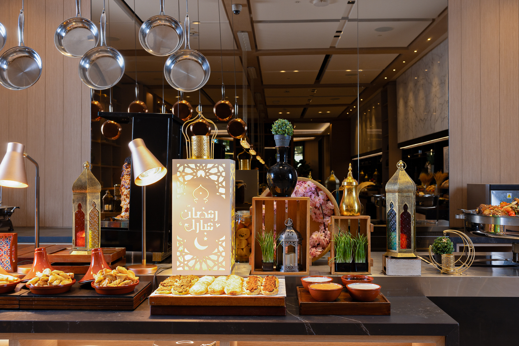 Break your fast and experience a Ramadan meal at The Restaurant, Address Beach Resort’s signature dining venue. The sprawling, contemporary setting, complemented by the gentle notes of a live oud player, offers a relaxed yet refined backdrop for evenings with family and friends. The extensive buffet stars traditional Arabic dishes alongside international favourites. Begin with cold and hot mezze and make your way to the live cooking stations, followed by a stop at the freshly prepared grills. Don’t miss the classic, comforting Ramadan staples. A decadent dessert spread, including traditional Arabic sweets, rounds off this relaxed Iftar.